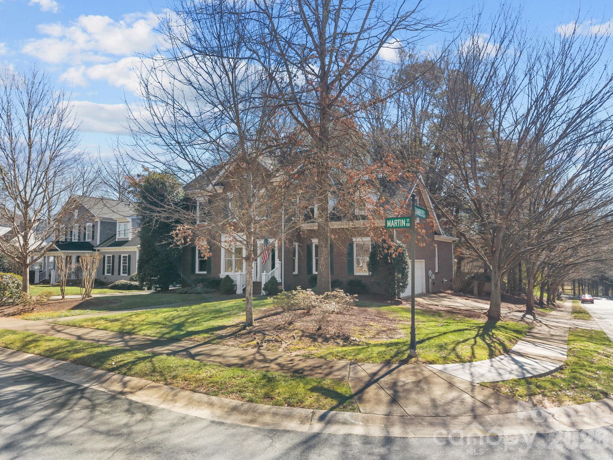 Charleston Charm Meets the Heart of Davidson! Experience the best of Davidson living in this quintessential McConnell home. Perfectly situated on a premier corner lot, you’ll wake up to serene views of Chambers Park right across the street. Walk just minutes to historic downtown for your morning coffee, a stroll through the Davidson College campus, or dinner at some of the region's top-rated restaurants. After a day out, retreat to your main-level primary ensuite, or enjoy the quiet of your screened porch overlooking a private, fenced, and wooded backyard. With a soaring vaulted great room and an open-concept kitchen, this is a home designed for both cozy nights by the fire and effortless entertaining. A classic, all-brick home commanding a prominent corner lot, this residence exudes timeless curb appeal and a stately presence. The entrance is welcoming, set back from the street by a large, flat front yard—an easily maintained expanse of green, ideal for recreation and lending to a beautiful streetscape. In a rare and desirable combination, the back of the property offers a peaceful wooded backyard, providing a private, natural sanctuary and excellent seclusion for outdoor living. Perfectly situated, the home sits directly across the street from a neighborhood park, offering residents immediate access to green space for the community without having to maintain it.