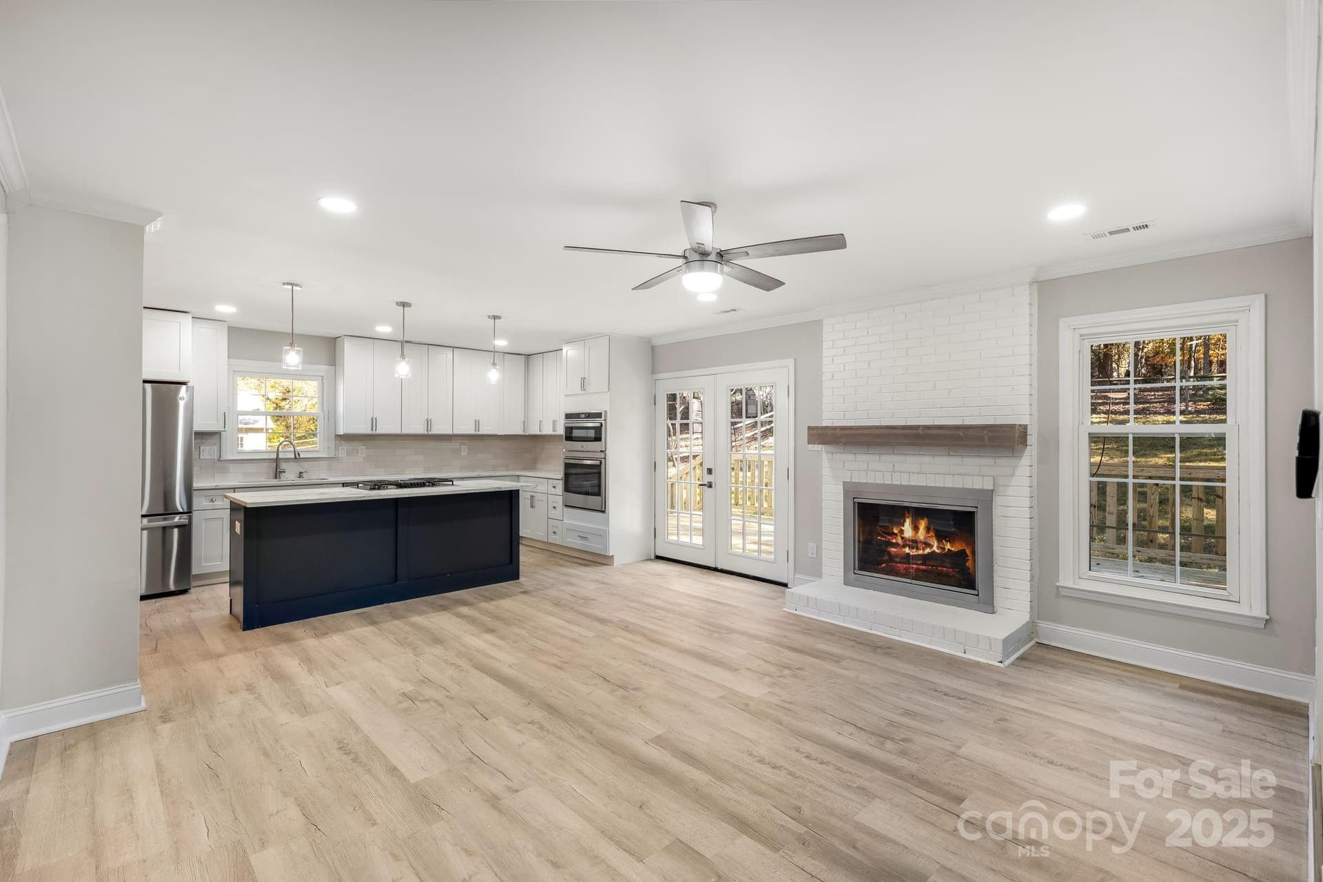 Discover this exquisitely renovated one-story ranch in the heart of charming Matthews! This 3-bedroom, 2-bath home offers over 1,550 square feet of thoughtfully updated living space, featuring a bright, open floor plan designed for modern living. The stunning kitchen is a true centerpiece, boasting brand-new cabinetry with soft-close doors and drawers, a center island with seating for barstools, a cooktop with downdraft and pendant lighting! Quartz countertops, stainless steel appliances, new refrigerator and a convenient wall oven/microwave combo—all seamlessly open to the family room, breakfast nook, and living area. Terrific master bath featuring a ceramic tile shower with a rain shower head, plus a brand-new vanity and sink for a fresh, modern feel. Every upgrade has been thoughtfully done: new luxury vinyl plank flooring throughout, recessed lighting, updated light and plumbing fixtures, new interior doors and hardware, and ceiling fans in every bedroom. The expansive new back deck is perfect for sipping your morning coffee and overlooking a fully fenced backyard—perfect for relaxing and entertaining! This property offers ample space to add a 2-car detached garage if desired! Move-in ready, beautifully upgraded, and full of charm—this Matthews gem is a must-see!