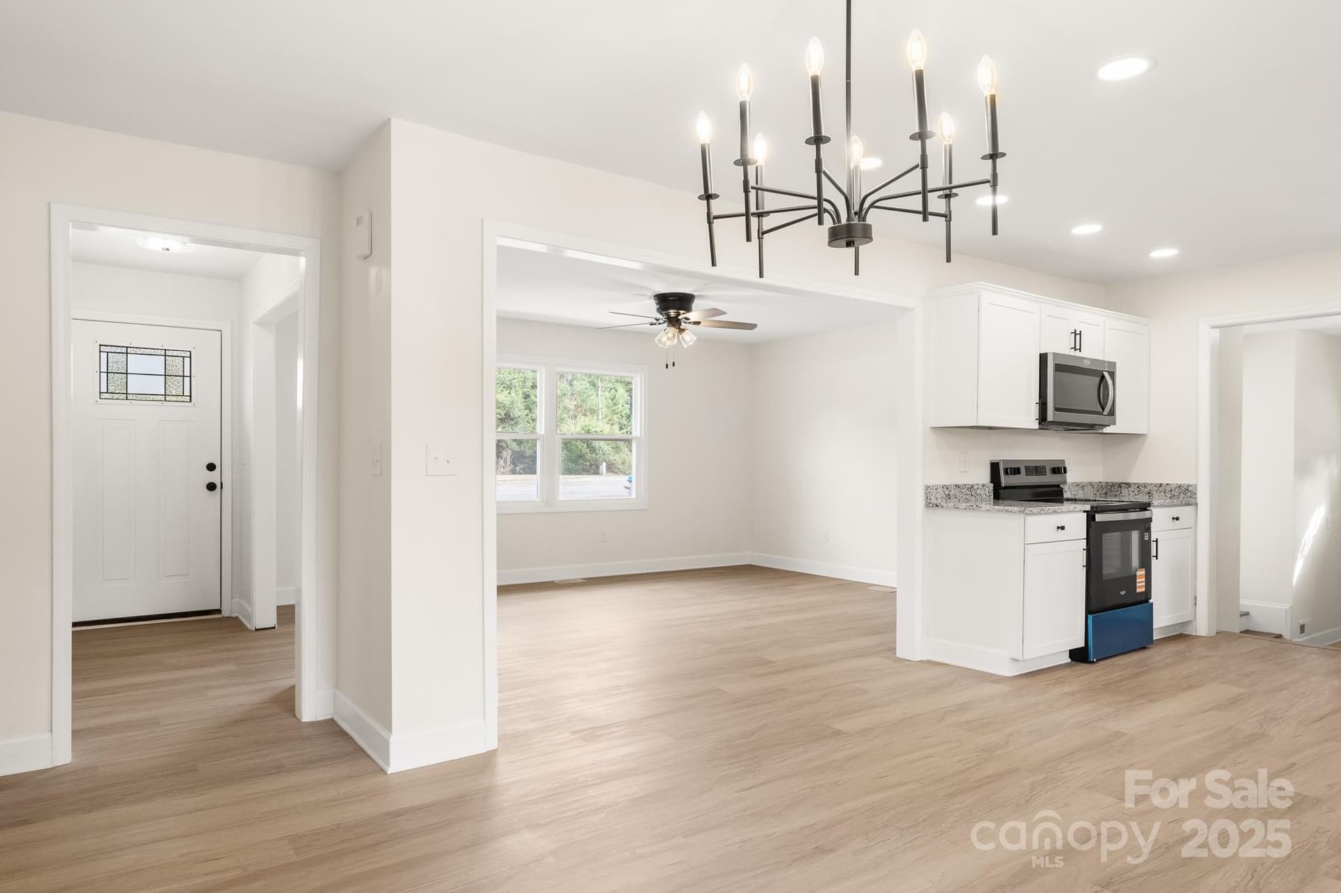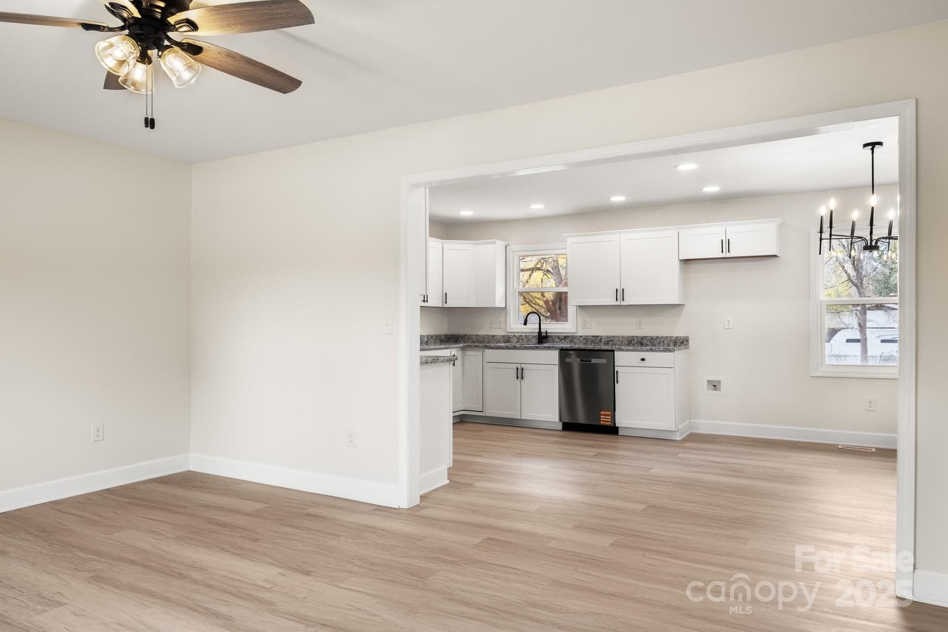 CUTE, NEWLY updated brick ranch ready for you to make it your home! This house sits on a GREAT, open lot! Walk into this gorgeous home onto NEW LVP flooring throughout the entire home. Great Room is spacious & features modern ceiling fan. Kitchen is AWESOME w/white shaker cabinets, granite countertops, SS Microwave, Stove, and Dishwasher. Primary suite hosts a modern ceiling fan, sizeable closet, and bathroom w/single granite vanity & tub/shower combo. 2 Guest bedrooms are ample in size and share the additional full bathroom w/single granite vanity & tub/shower combo. Additional room would be the perfect space for an office! This house has a lot to offer, come check it out!