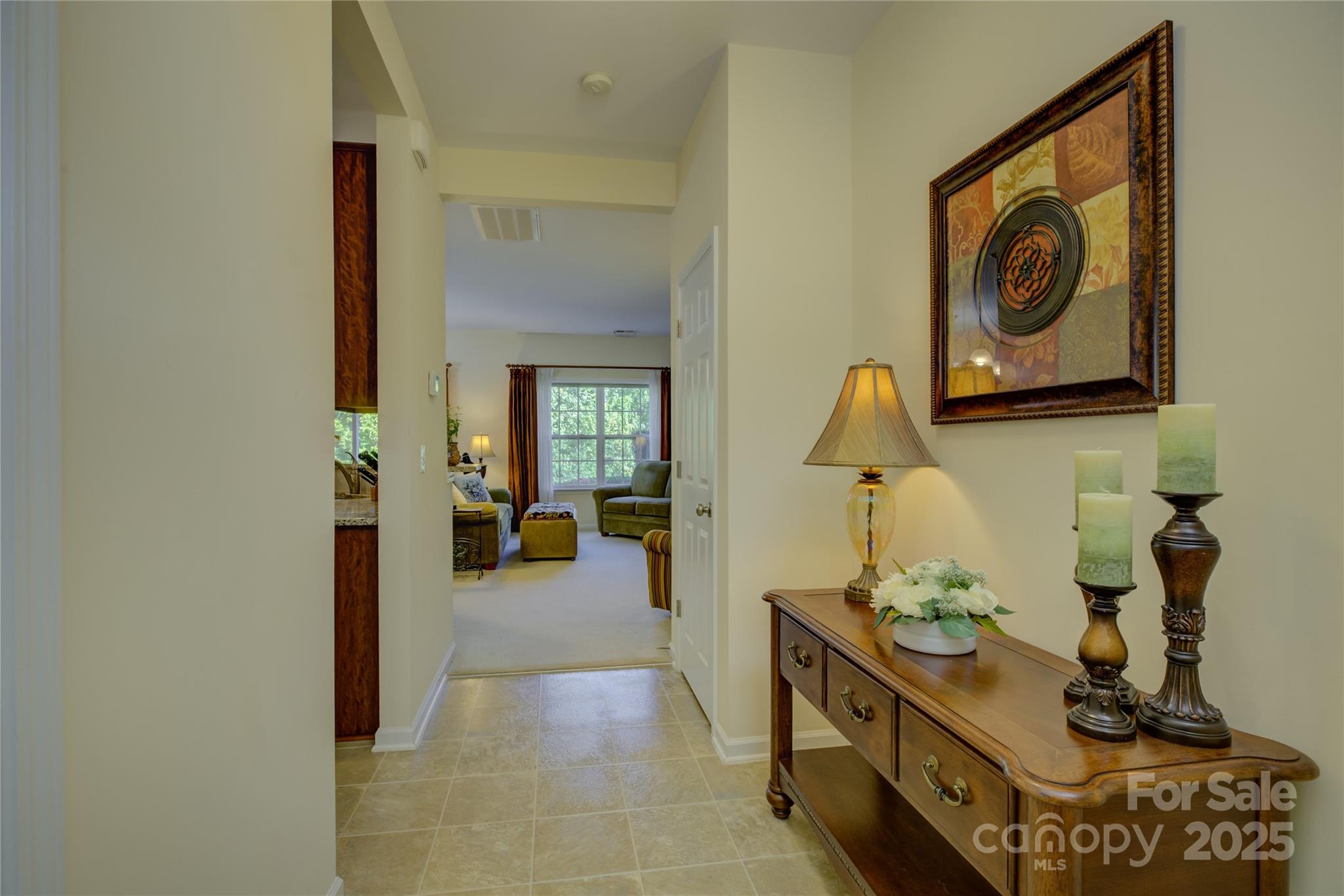 This property enjoys a premier setting backing directly onto Little Sugar Creek Greenway, offering instant access to miles of scenic trails for walking, biking, and outdoor recreation. Instead of neighbors behind you, you’ll have a natural backdrop of greenery and open space. The kitchen is designed for convenience and efficiency. Granite countertops feature a bar counter, perfect for entertaining guests or preparing quick meals on the go. Butler's pantry provides extra storage, a coffee station, or a prep area. The dining area opens onto a paver patio overlooking the wooded yard. A sunny living room is a comfortable space to relax or entertain. Upstairs, the spacious primary bedroom features a vaulted ceiling, an en-suite bath & large walk-in closet. Hall closet enclosed laundry room. The secondary bedroom features an en-suite bathroom. Single-car garage. Whether it’s morning jogs, weekend bike rides, or peaceful evening strolls, the greenway becomes an extension of your backyard and an everyday lifestyle upgrade. Located just minutes from the Carolina Place Mall & dining options, this home provides the perfect mix of active outdoor living and everyday convenience.