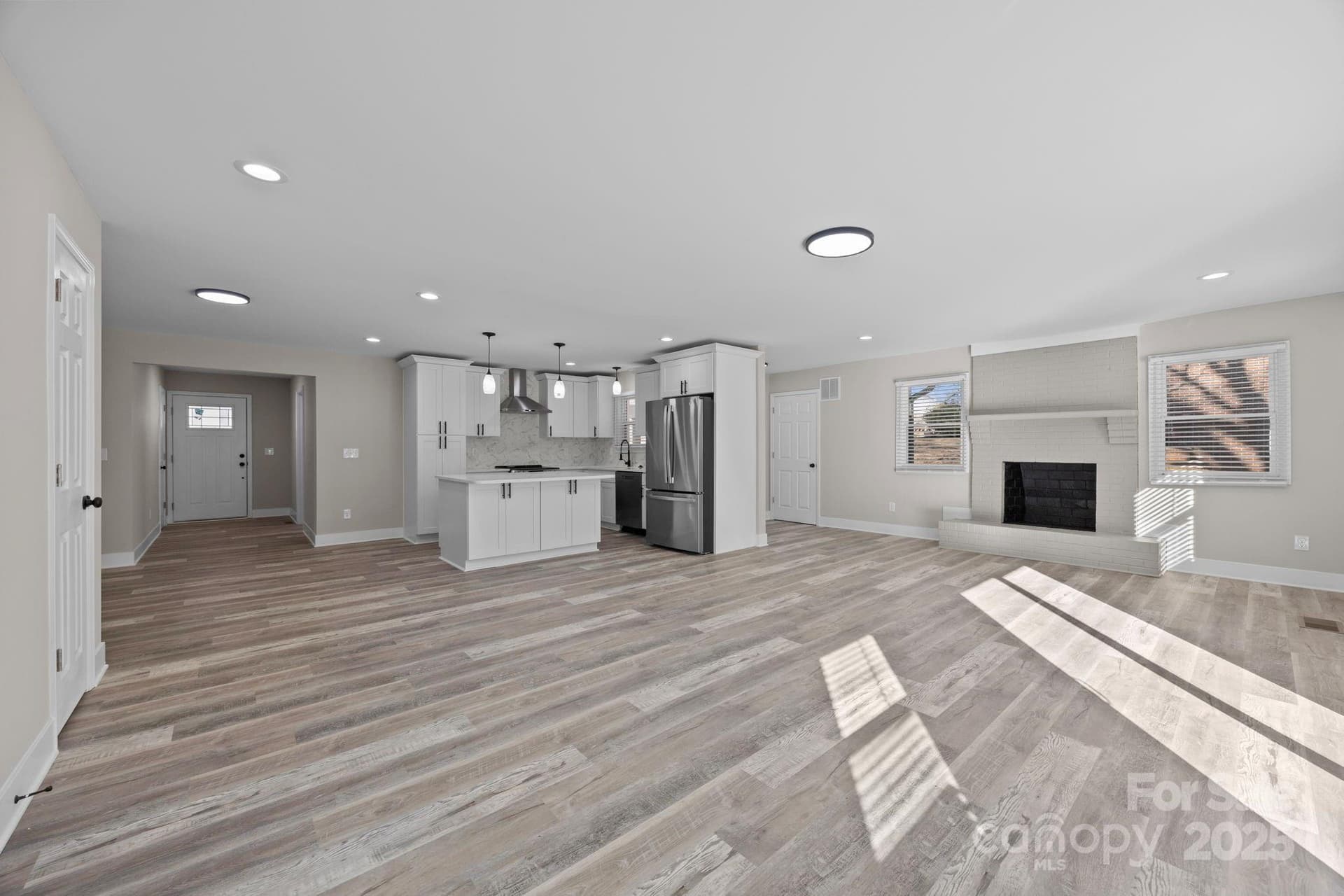 Beautifully updated Brick Ranch offering 3 bedrooms and 2 full bathrooms with a desirable open floor plan. The living room features wood-burning fireplace and opens directly to a rear patio, ideal for indoor- outdoor living. The fully renovated kitchen boasts new cabinetry, quartz countertops, tile backsplash, a center island, and all new stainless steel appliances including an electric range and oven, hood exhausted fan, dishwasher, sink and faucet, and disposal. Home features all new light fixtures, fresh interior and exterior paint, new vinyl blank floors, new carpet in bedrooms, new windows and doors, and modern finishes throughout. The spacious primary bedroom includes an en-suite bathroom with double vanities, a walk in shower, and a walk in closet. A Additional highlights include and Unfinished basement with walk-out access, providing excellent storage or future expansion potential and a Brand New Front Porch. Move in ready with quality updates throughout. This Home Is A Must See!!!!