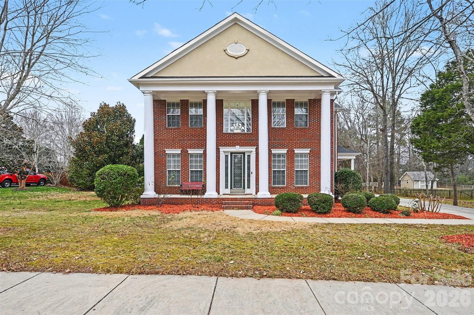 Prime Union County Location | Classic Brick Estate. Welcome home to this stunning two-story red-brick residence, offering a timeless, stately presence with a blend of Georgian, Colonial, and Neo-Classical architectural influences. Designed with both elegance and functionality in mind, this home delivers a classic exterior with fresh new finishes in and out. Step inside the impressive two-story foyer, flanked by two versatile flex rooms—ideal for a home office, formal living space, or study. The open floor plan provides ample space for everyday living and entertaining, and connects the main living areas. This home features 4 spacious bedrooms and 4 bathrooms (including one half bath), all enhanced by fresh paint, brand-new flooring throughout—including hardwoods, LVP, and carpet—and updated kitchen colors with new appliances. Out back, new Trex decking connects to a covered wrap-around porch, perfect for relaxing or hosting guests. The expansive backyard is an entertainer’s dream, complete with a black iron-fenced, in-ground saltwater pool. Conveniently located near shopping, dining, and medical offices, this home combines classic charm, modern updates, and a fantastic Wesley Chapel location.