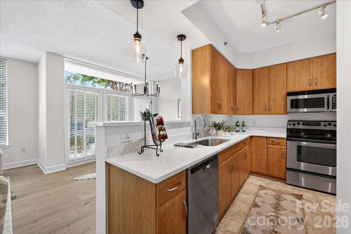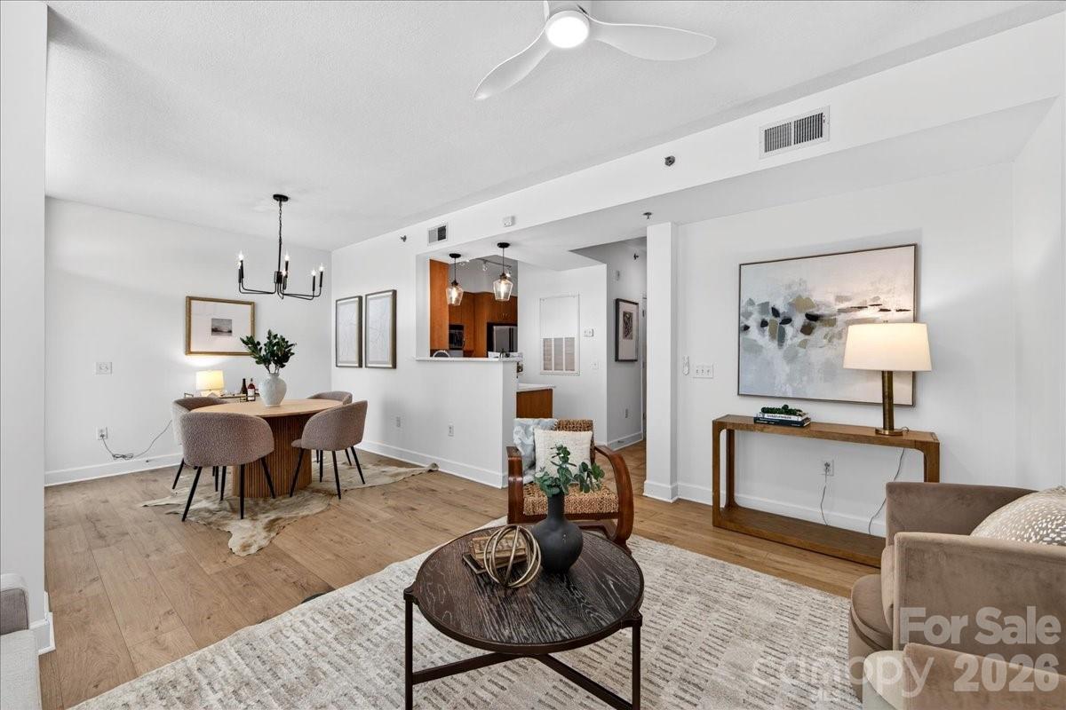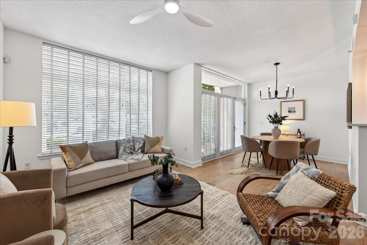 Enjoy convenient city living in the heart of Dilworth! This move-in ready 2-bedroom, 2.5-bath condo has been fully updated and offers the rare advantage of a ground-level unit with direct outdoor access—perfect for guests and walking to nearby restaurants, coffee shops, boutiques, and more. The main level features an open-concept layout seamlessly connecting the living, dining, and kitchen areas; ideal for everyday living and entertaining. Recent updates include fresh interior paint, brand-new LVP flooring, bright quartz countertops, and fresh lighting. Upstairs, you’ll find a full-size laundry room and a spacious secondary bedroom with a dedicated hall bath. Then move into the primary suite that is filled with natural light from a private balcony and features an expansive en-suite bath complete with a walk-in shower and dual vanity. Beyond the home, enjoy community amenities including a fitness center, secure package room, and rooftop terrace. This home offers both comfort and convenience in one of Charlotte’s most desirable neighborhoods.
