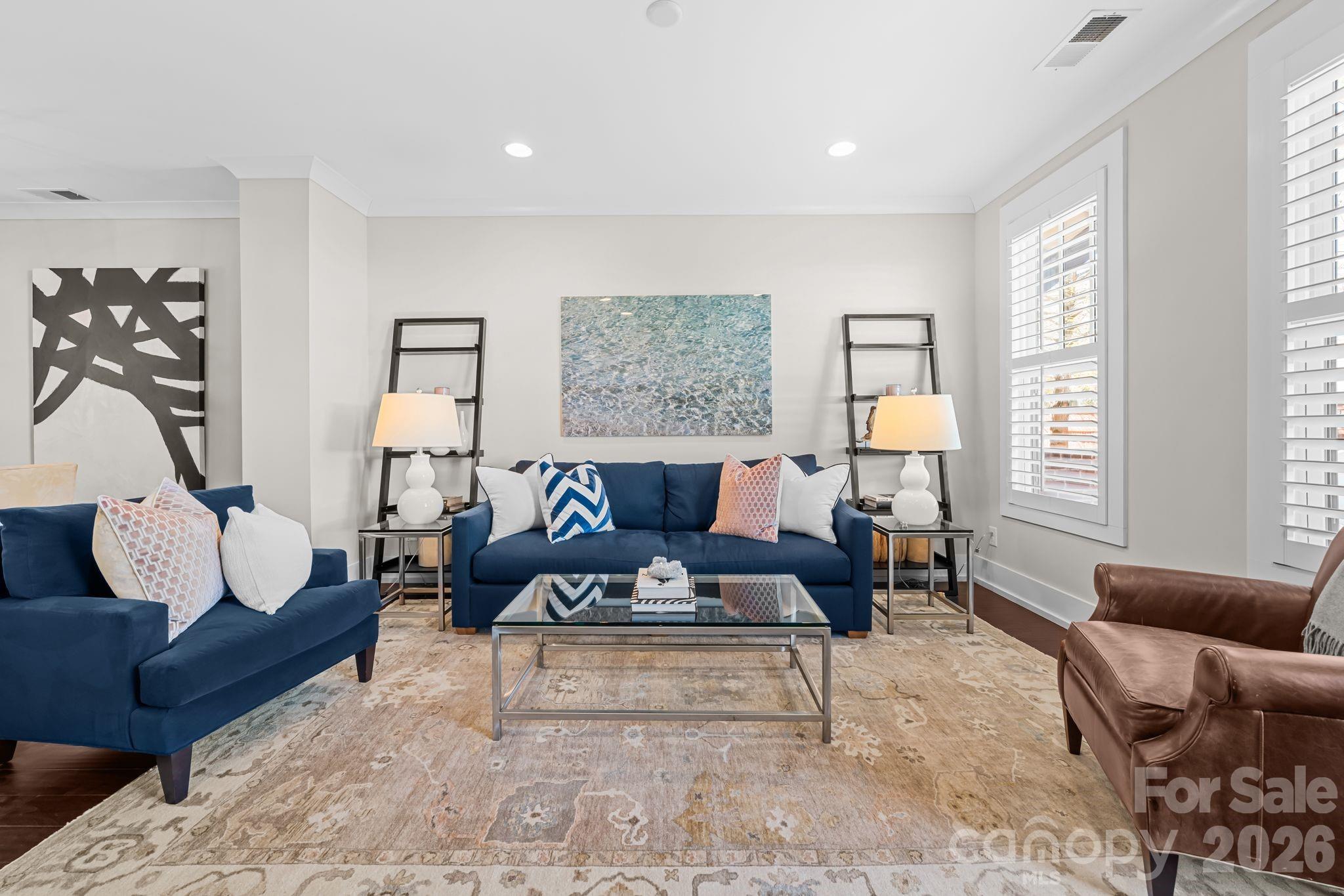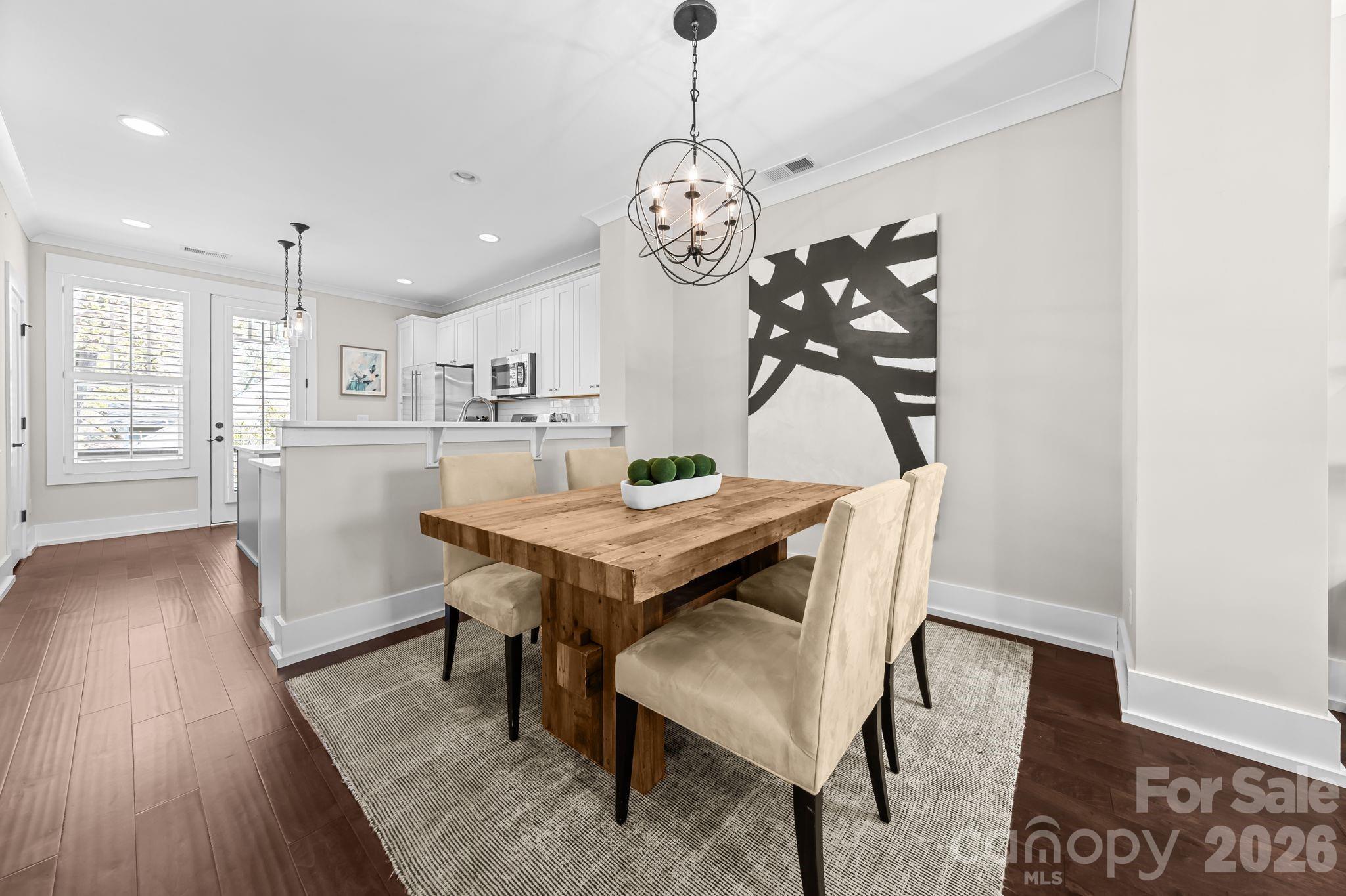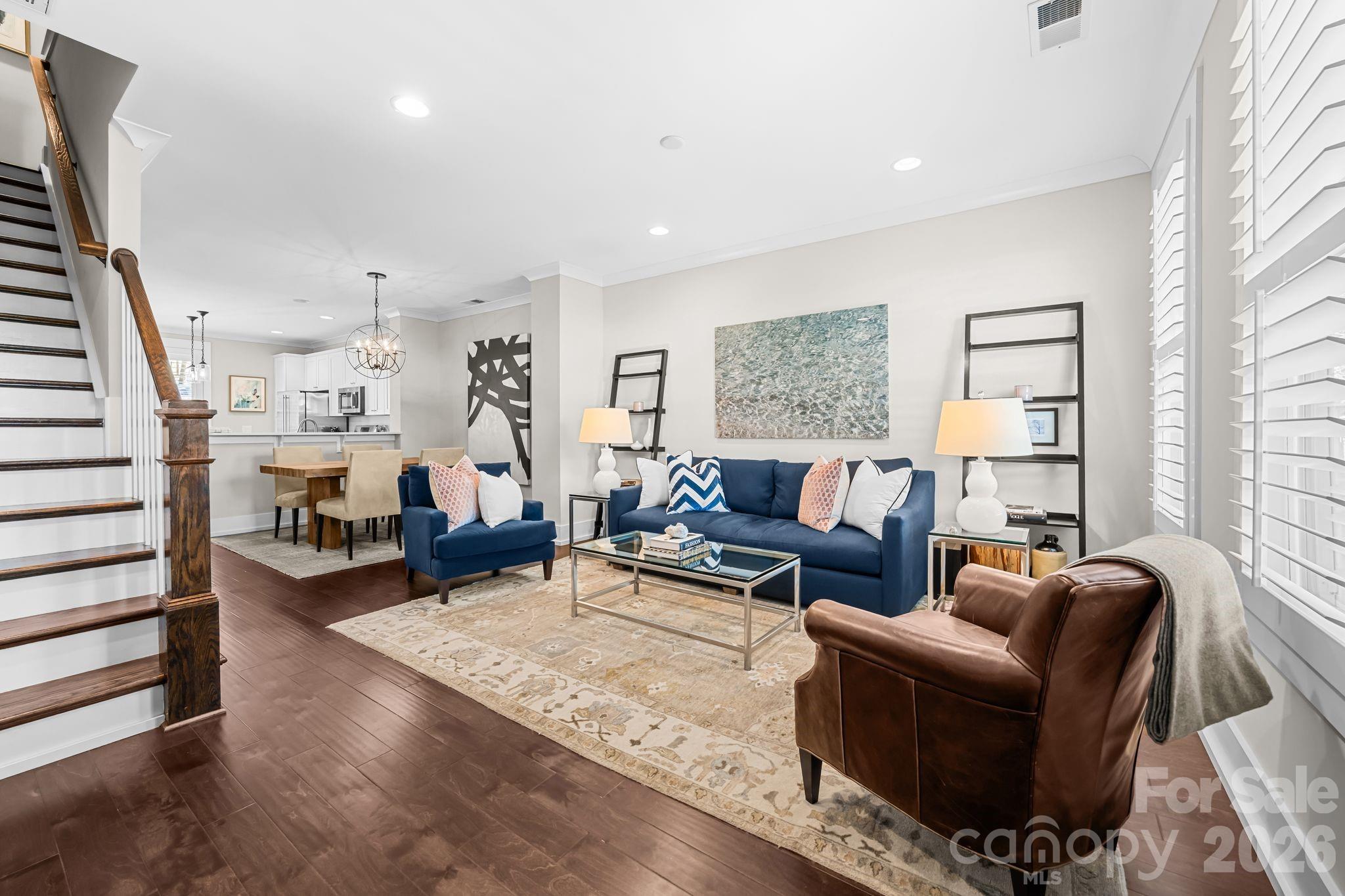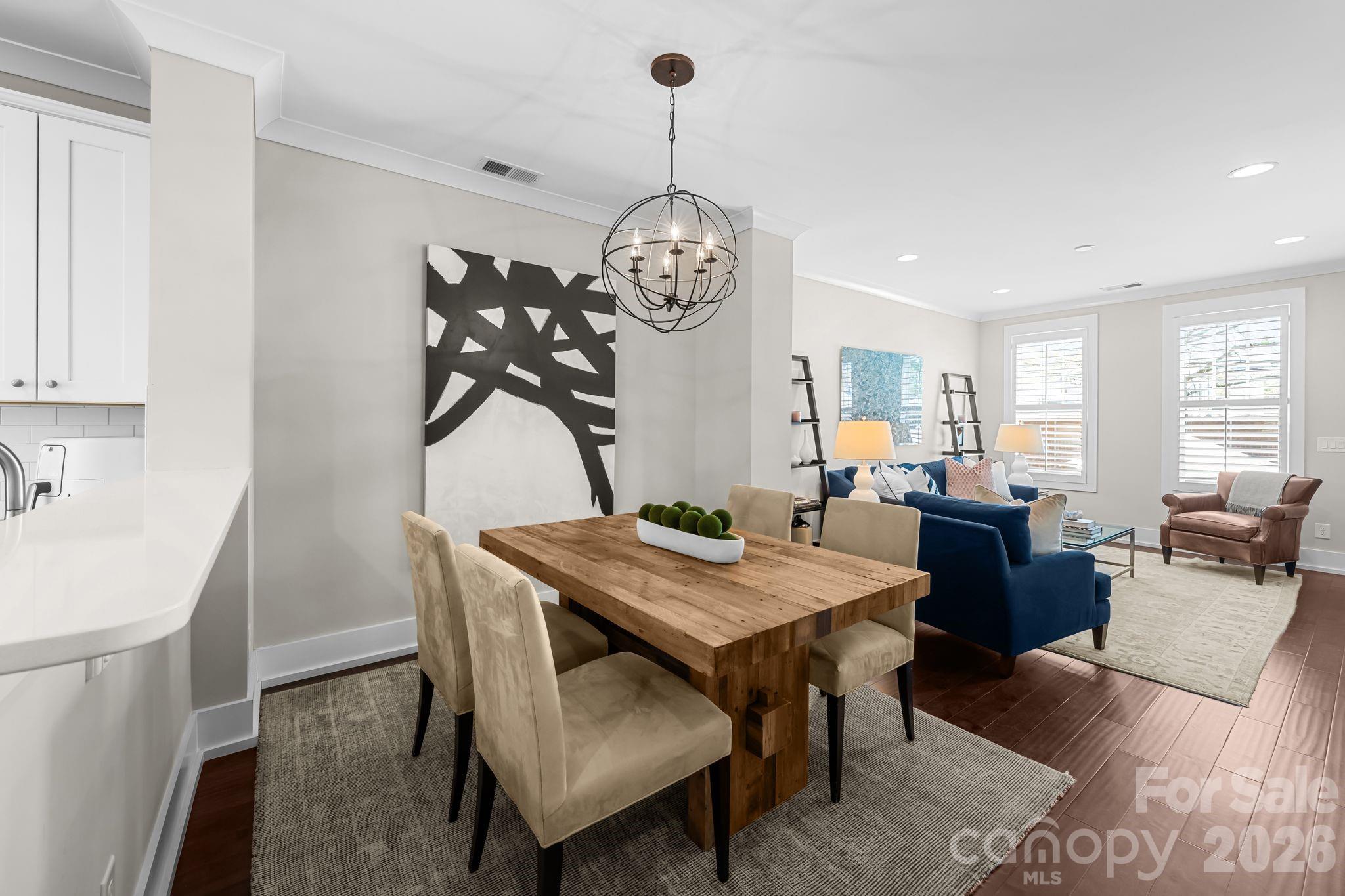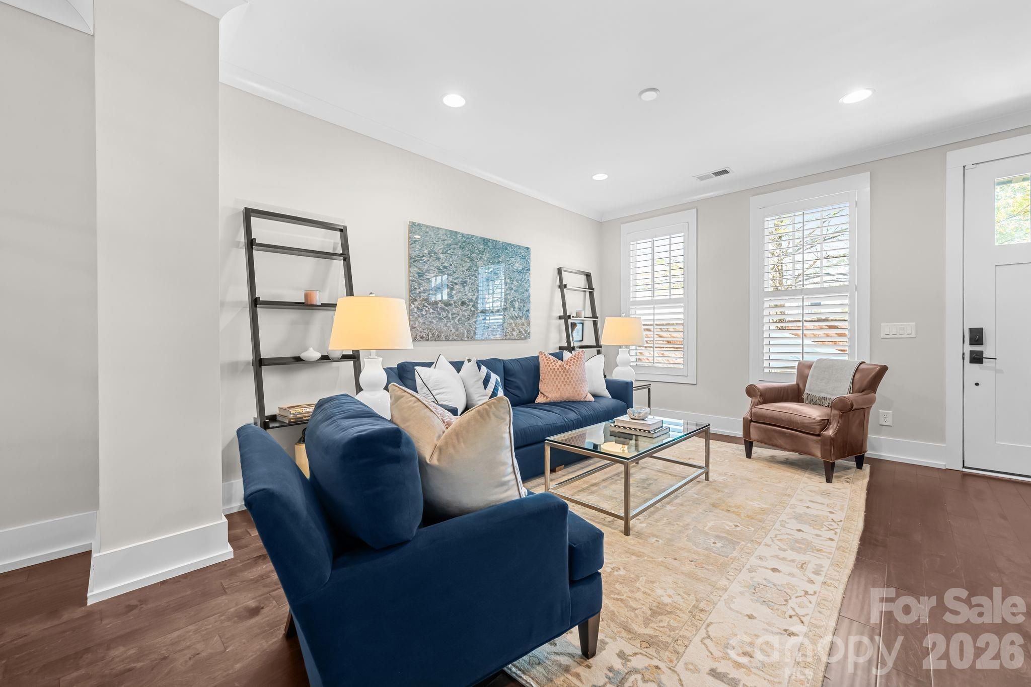 Located in the heart of Dilworth, this beautifully upgraded townhome offers the ultimate walkable lifestyle—just steps to East Blvd, and minutes from South End, top restaurants, coffee shops, grocery stores, and major hospitals. Inside, the home blends timeless design with modern convenience. Custom plantation shutters span the entire home, complementing rich wood flooring and elevated trim details. The kitchen is both stylish and functional, featuring quartz countertops, a GE Monogram refrigerator, brand new Bosch dishwasher, and designer pendant lighting over the island. Thoughtfully designed for everyday living, the lower level includes built-in desk and storage, while the garage has been fully upgraded with epoxy floors, floor-to-ceiling cabinetry, workbench, and wall storage system. Upstairs, the primary suite is a true retreat with a custom walk-in closet—expanded and finished with built-in shelving and a sliding barn door—along with a statement chandelier for added elegance. The laundry area includes a stackable washer and dryer with custom shelving for optimal organization. This home is equipped with smart and functional upgrades throughout, including Nest thermostats on all three levels, AT&T fiber wiring, ADT security system with panels and sensors, Ring doorbell camera, and a front door combination lock. Additional updates include a newly leveled and redesigned patio and a recently replaced AC compressor. Every detail has been thoughtfully considered, offering a low-maintenance, move-in-ready home in one of Charlotte’s most desirable and connected neighborhoods.