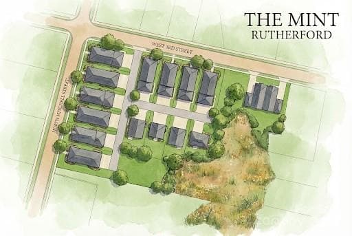 Welcome to The Mint Rutherford, a brand-new construction community offering modern living just steps from the heart of downtown. This thoughtfully designed 3-bedroom, 2-bath home with a true 2-car attached garage places you only one block from Main Street—walk to cafés, boutiques, restaurants, and the new Rail Trail without ever getting in the car. Striking transitional curb appeal meets low-maintenance living with Hardie® plank and board-and-batten siding, brick or stone accents, a standing-seam metal porch roof, and architectural shingles—classic style with zero weekend upkeep. Inside, enjoy all-electric, energy-efficient living with ENERGY STAR® stainless appliances, LVP flooring, low-flow fixtures, and foam-sealed construction designed to keep utility costs low. The open layout is filled with natural light thanks to oversized windows, 10-foot ceilings, and 8-foot doors throughout & a vaulted great room. The chef-ready kitchen features Shaker cabinetry, quartz or granite countertops, a statement island with farmhouse sink, commercial-grade faucet, and a walk-in pantry—perfect for entertaining. Relax in the resort-style primary suite with a frameless glass, ceiling-tiled shower, double vanity, crown molding, and a spacious walk-in closet. Outdoor living is just as inviting with a covered front masonry porch and a rear covered patio, while HOA lawn care keeps everything pristine year-round. Smart-home features come standard, including a Ring™ video doorbell, keypad deadbolt, USB outlets, Wi-Fi thermostat and smoke detectors, smart water shutoff, and prewiring for wall-mounted TVs. With new-construction warranties, durable finishes, and an unbeatable downtown location, The Mint Rutherford offers low-stress ownership and strong future value—ideal for first-time buyers, right-sizers, or anyone seeking walkable, modern living. Completion date is anticipated for late February/early March 2026.