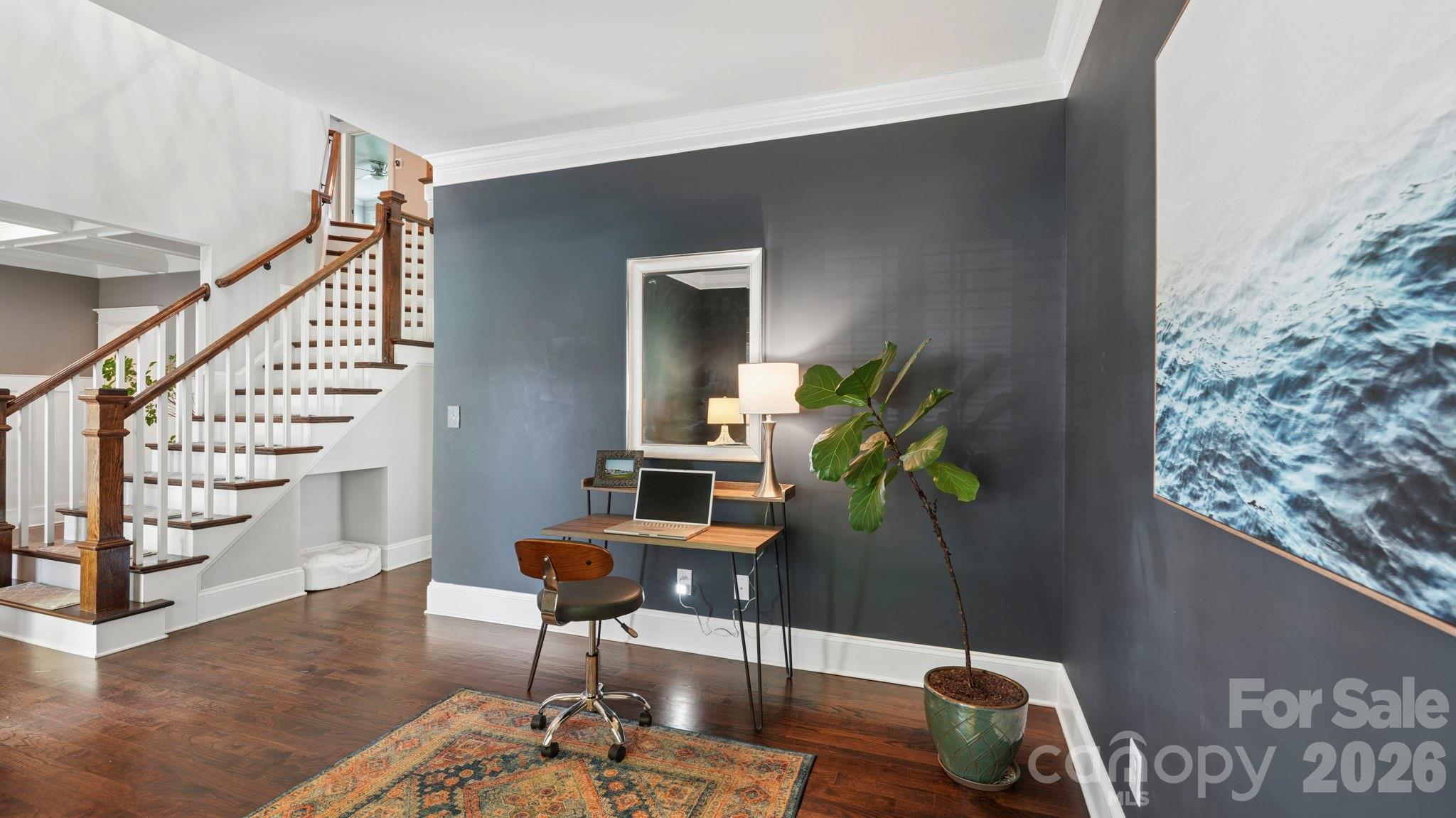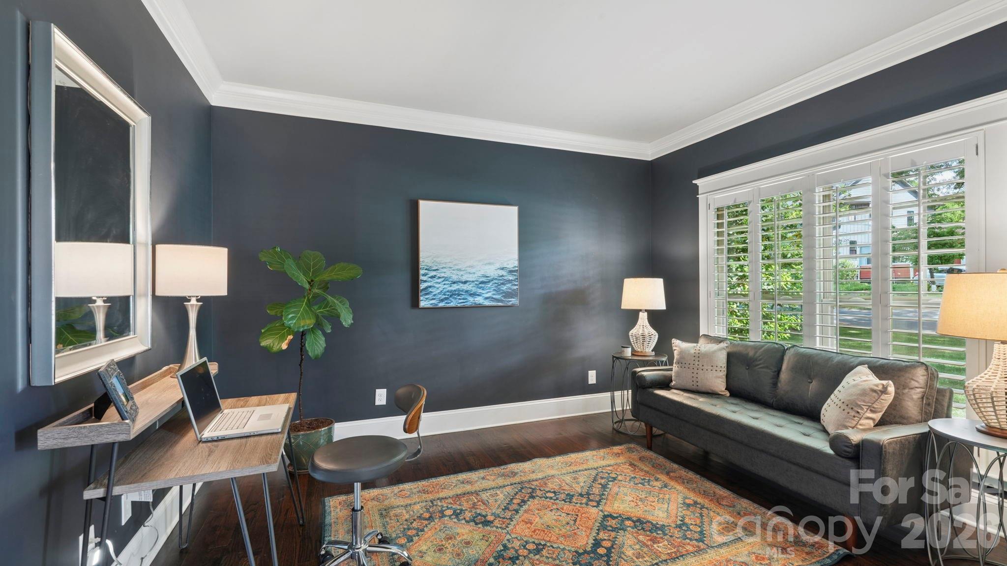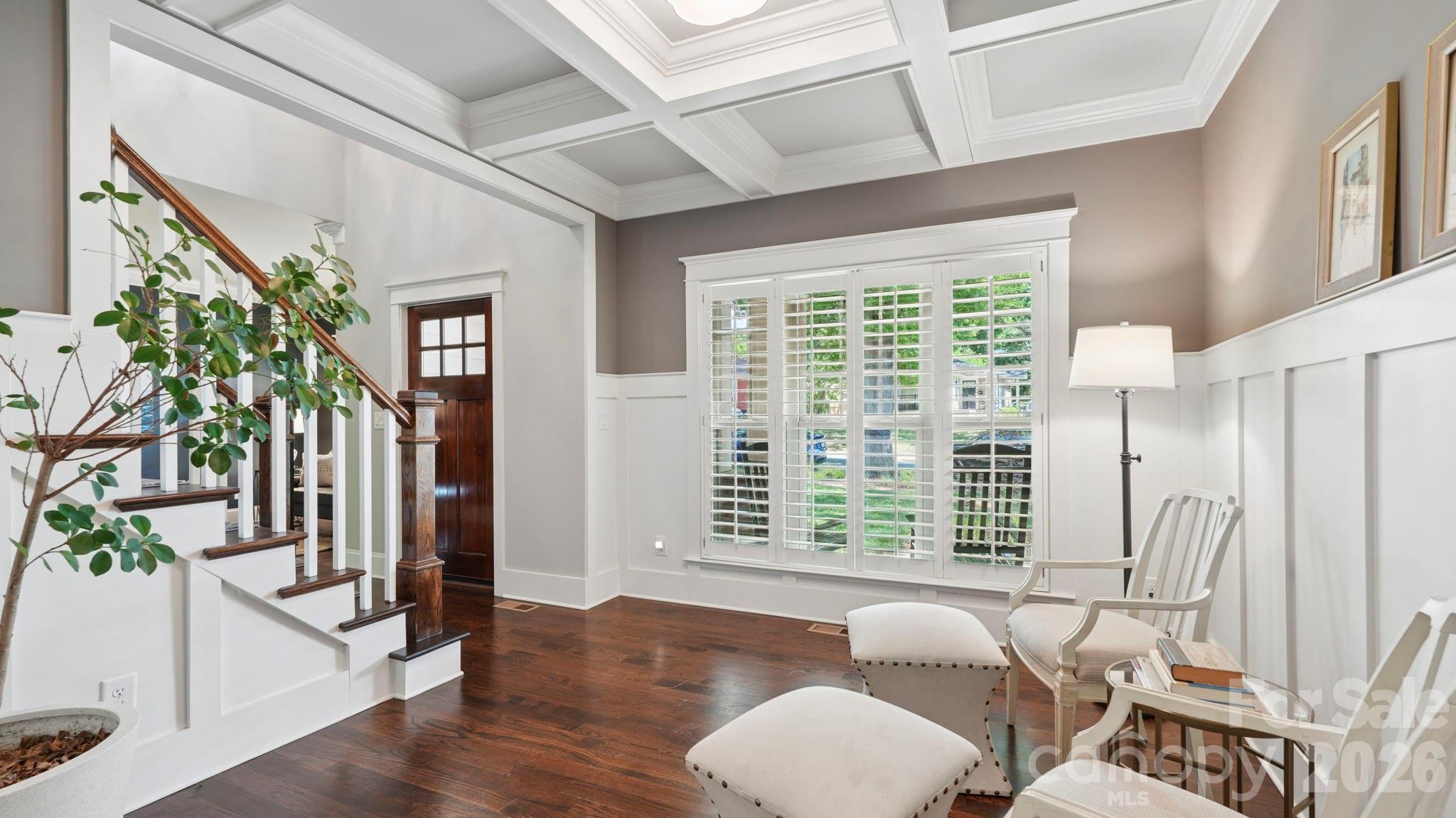 Classic charm meets modern convenience in this nicely maintained 2016 home in Wilmore. Ideally located with easy access to South End, Dilworth, and Uptown, this address offers the best of in-town living. Curb appeal shines with mature, architect-designed landscaping in both the front and back yards. The outdoor living spaces are just as impressive, featuring a deep covered back porch with low-maintenance composite decking and a lower paver patio with fire pit, perfect for relaxing or entertaining. Inside, the flexible floor plan adapts to your lifestyle, offering two dedicated office options (one easily serving as a formal dining room, the other a study). The spacious family room, anchored by a stone fireplace, flows seamlessly into the breakfast area and kitchen. Highlights include white soft-close cabinetry, granite countertops, under-cabinet lighting, and pantry. The main level also features a functional drop zone, a full laundry room with added storage, and a two-car garage with epoxy flooring and overhead storage racks. Upstairs, the primary suite is a retreat, complete with a vaulted ceiling, custom walk-in closet, and a bath with dual vanity, soaking tub, and separate shower. Two additional bedrooms share a well-appointed hall bath. A large bonus room offers incredible flexibility as a fourth bedroom, media room, or playroom. Hardwood and tile floors throughout the first and second floors, with carpet only in the bonus. A great opportunity to enjoy a close-in location with space, flexibility, and thoughtful design—this one truly checks all the boxes and currently zoned for Myers Park High School. Welcome home!