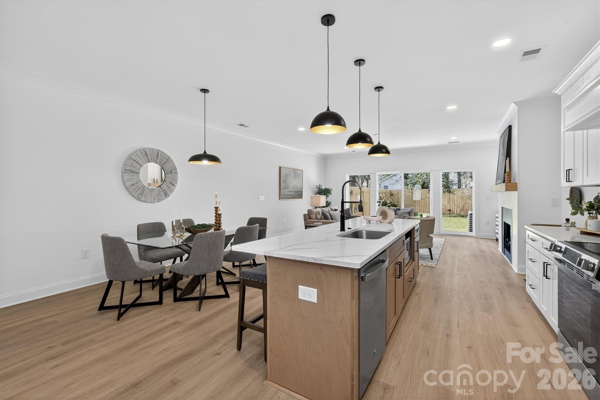 Back on market through no fault of the seller, as previous buyer was unable to complete the transaction. Their timing creates a new opportunity for the next buyer. Meet 1802 Vinton, an interior-unit townhome offering a thoughtful take on urban city living. With clean design and comfortable finishes throughout, this home balances style and functionality in an easy, livable way. Inside, you’re welcomed by a light-filled entry and a practical layout designed for everyday flow. The kitchen anchors the main level with quartz countertops, an oversized island, stainless steel appliances, and a walk-in pantry with custom shelving. It opens directly to the living area, creating a natural space to gather or unwind. Luxury vinyl plank flooring runs throughout, adding a cohesive feel, while the living space extends to a private, fenced outdoor area, a rare find for city living and perfect for low-maintenance outdoor enjoyment. Upstairs, all three bedrooms are well-positioned, including a spacious primary suite with a walk-in closet and a spa-inspired bath. Located in a highly convenient pocket of the city, you’re just an eight-minute walk to Oaklawn Language Academy, minutes to Camp North End, two minutes to JCSU, and close to the Gold Line, Uptown, and I-277. Priced at $585,000, with eligibility for 100% financing with no PMI, plus up to $10,000 in lender assistance with the use of a preferred lender. The builder is also offering up to $5,000 in closing cost contributions with an acceptable offer and the use of the preferred lender. Approachable, well-located, and modern. Welcome home.