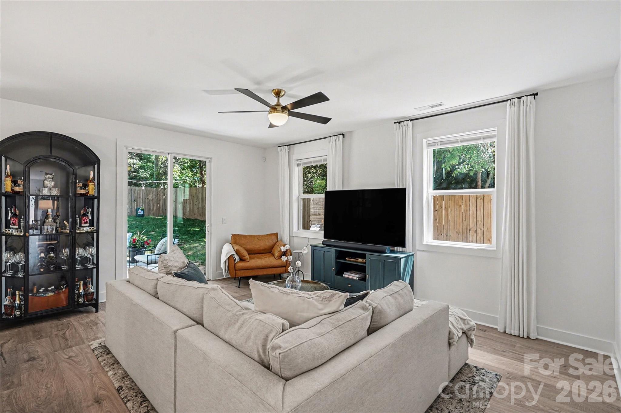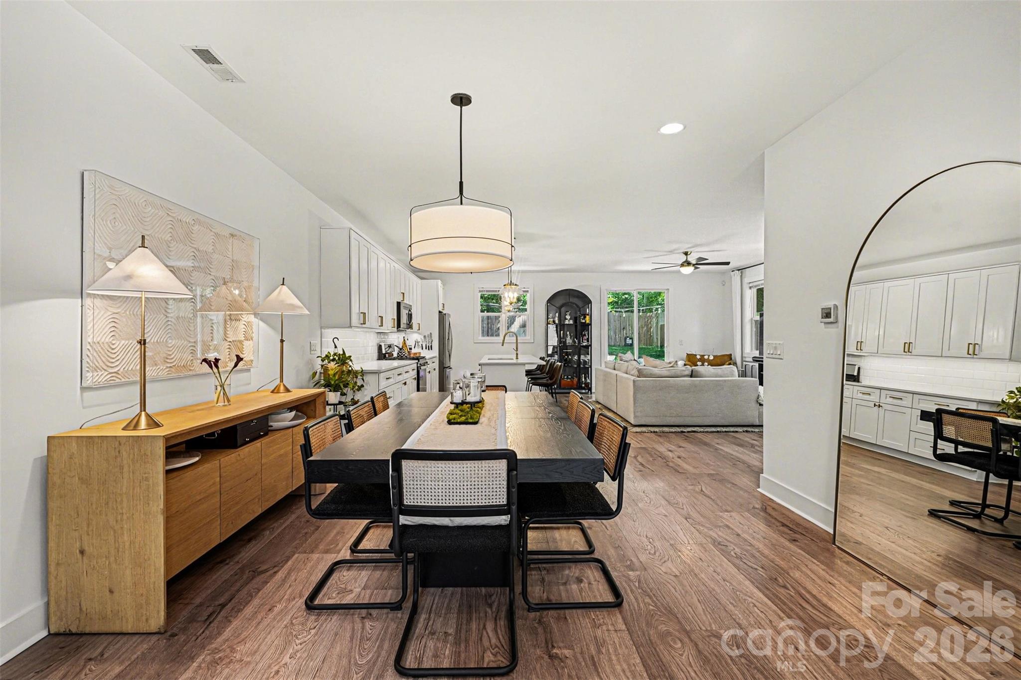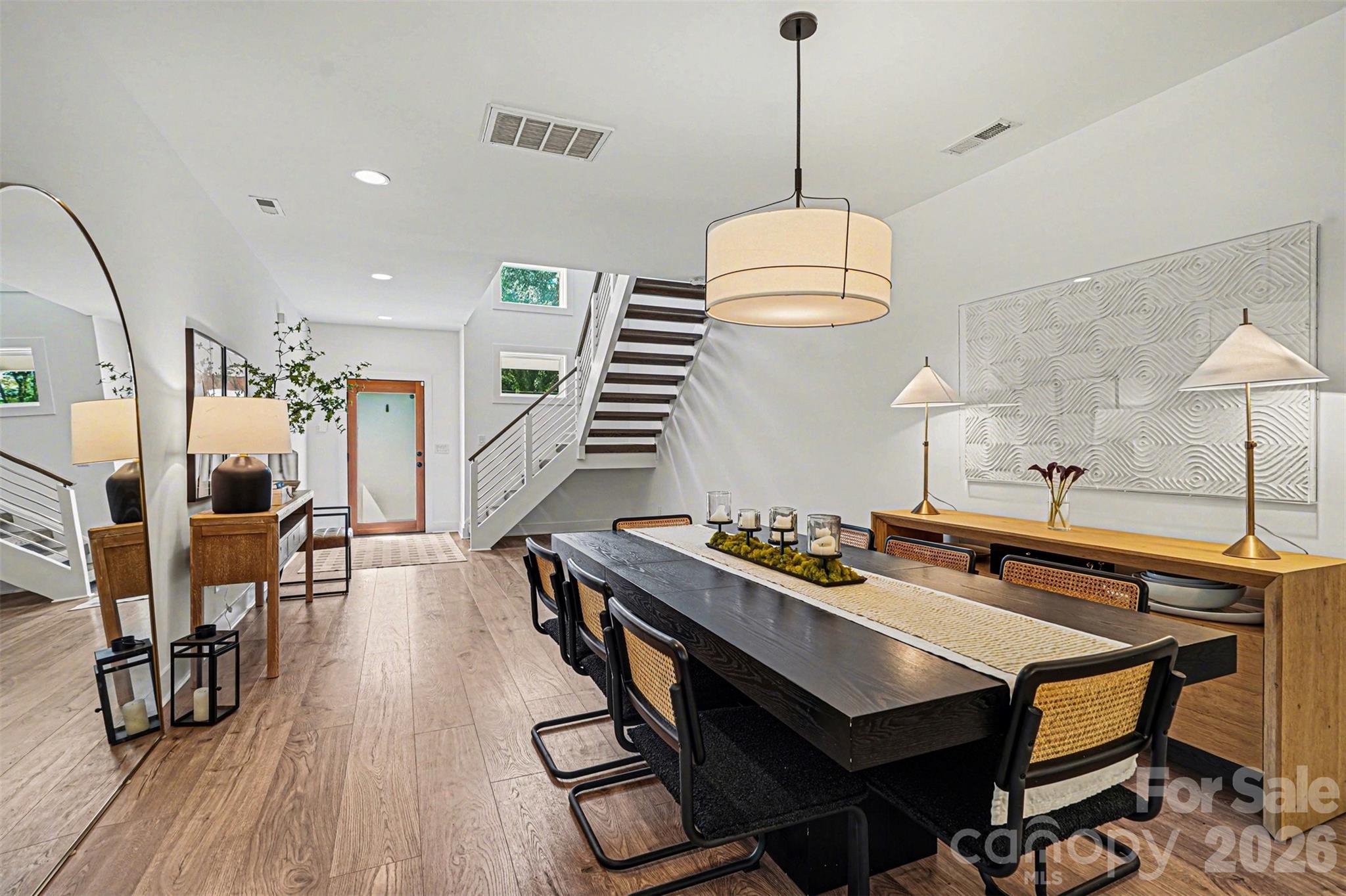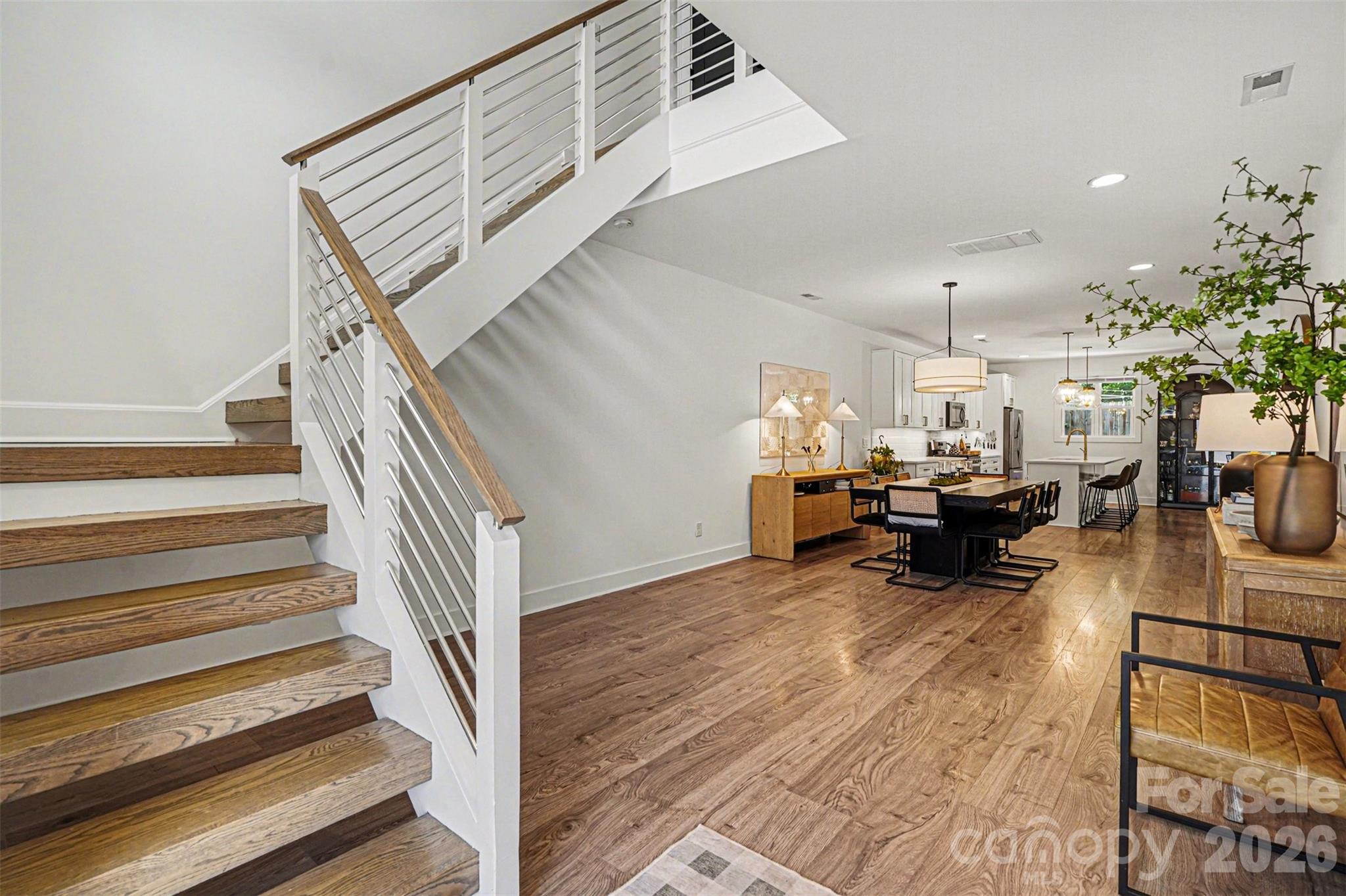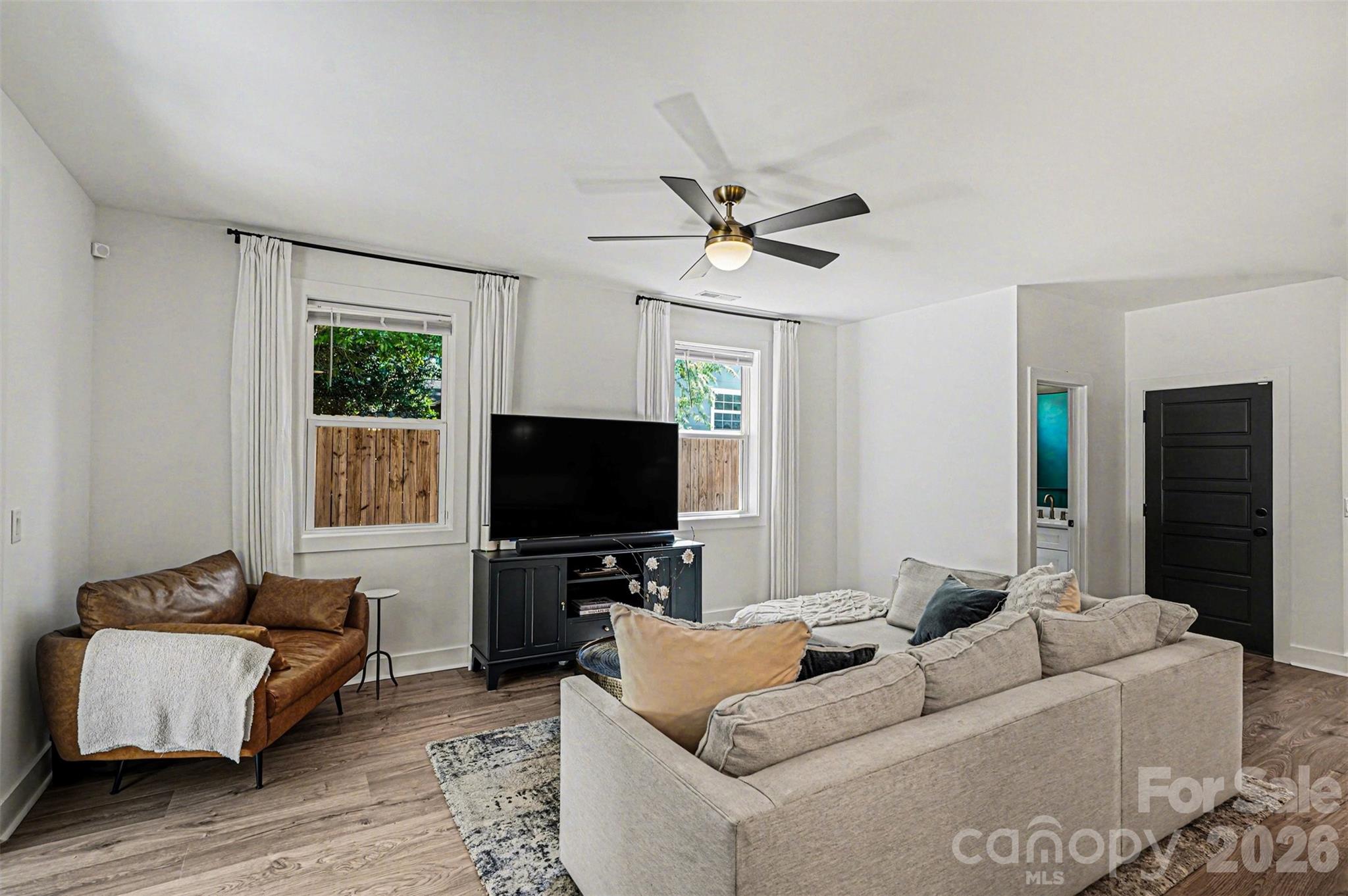 This striking contemporary home blends modern design with thoughtful, high-end finishes, creating a space that feels both elevated and inviting from the moment you arrive. The clean architectural lines and curated landscaping set the tone, while a welcoming covered entry with warm wood accents adds an immediate sense of style and intention. Inside, the home opens into a bright, airy layout filled with natural light and upscale touches throughout. Wide-plank flooring flows seamlessly across the main living areas, complemented by a soft, neutral palette and designer lighting that enhances the home’s modern aesthetic. The kitchen is a true centerpiece, featuring an oversized island with seating, sleek cabinetry, and a polished, open design that connects effortlessly to both the dining and living spaces—ideal for entertaining or everyday living. The attention to detail continues upstairs, where the primary suite offers a refined retreat with generous proportions, a custom walk-in closet, and a spa-inspired bath complete with dual vanities, elevated finishes, and a beautifully tiled walk-in shower. Secondary bedrooms are equally well-appointed, while additional spaces provide flexibility for a home office, guest rooms, or creative use. The laundry room is thoughtfully designed with built-in storage, adding both convenience and style. Outdoor living is just as impressive, with a fully fenced backyard designed for both relaxation and entertaining. A spacious patio creates the perfect setting for gatherings, while the private yard offers plenty of room to unwind in a serene, tree-lined setting. Located in the sought-after Eastwood area of Charlotte, this home places you just minutes from Plaza Midwood, NoDa, and Uptown, offering easy access to some of the city’s best dining, shopping, and entertainment. Enjoy the charm of an established neighborhood paired with the convenience of nearby urban amenities, making this an exceptional opportunity to experience modern living in one of Charlotte’s most vibrant and connected locations.