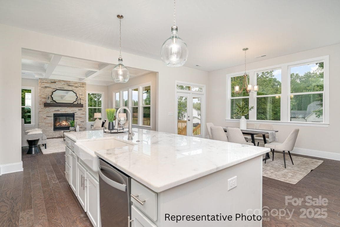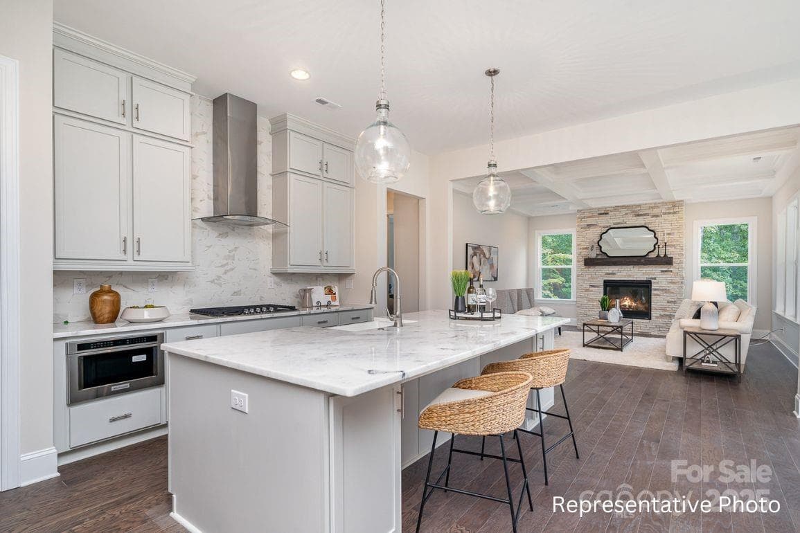 New construction in Cornelius in prime location just minutes from both Downtown Cornelius and Downtown Davidson. This is one of 5 new homes being built on cul-de-sac enclave! 4 BR, 3.5 BA layout with a primary suite on the main floor. Enjoy 10' ceilings downstairs and 9' ceilings upstairs, and act now to make selections. Many options to choose from, including granite/quartz countertops; multiple fireplace surrounds, numerous flooring options, & coffered ceilings! Stunning Kitchen with floor-to-ceiling cabinets, a large island that opens to a Family Room with a gas fireplace and a Dining Area leading to a covered deck. The Owner's suite includes a huge tiled walk-in shower, optional standalone tub, double vanity, and a large walk-in closet. The Study can serve as either an office or formal dining space, while hardwood flooring runs throughout the first floor. Upstairs is a spacious loft, secondary bedrooms with walk-in closets, including a Jack & Jill bath. Photos are renderings and/or are photos of previously completed home. Colors, options, layouts, etc. may differ from home on this homesite.