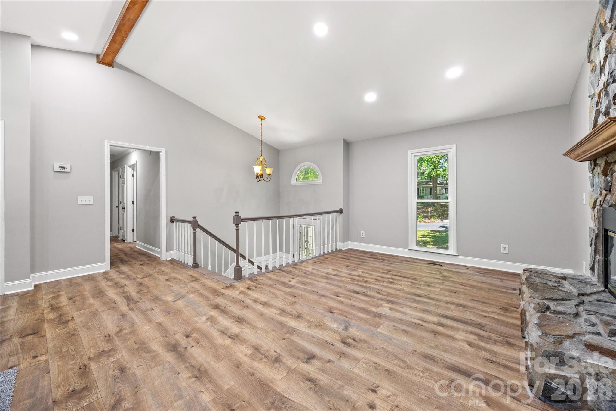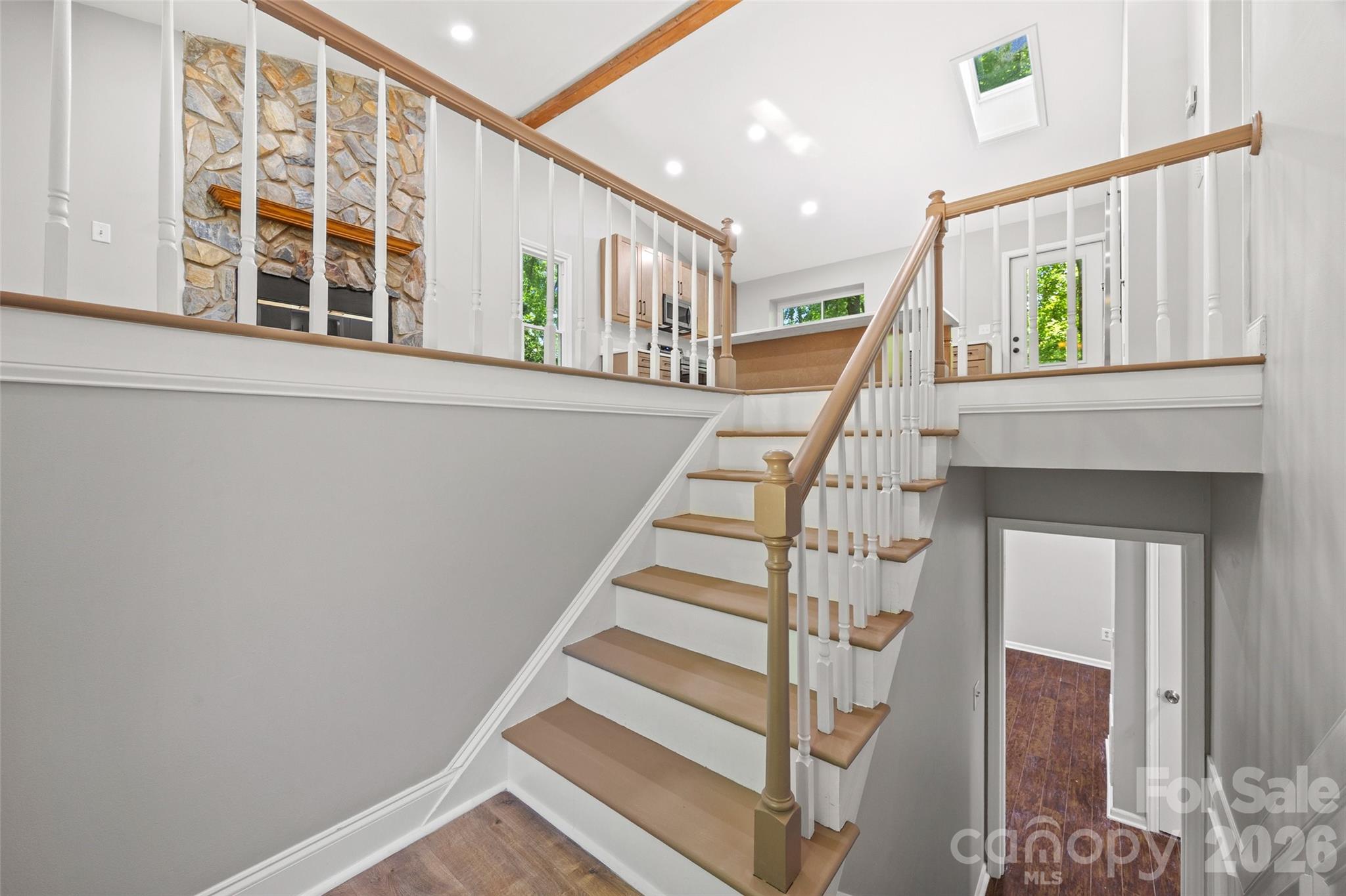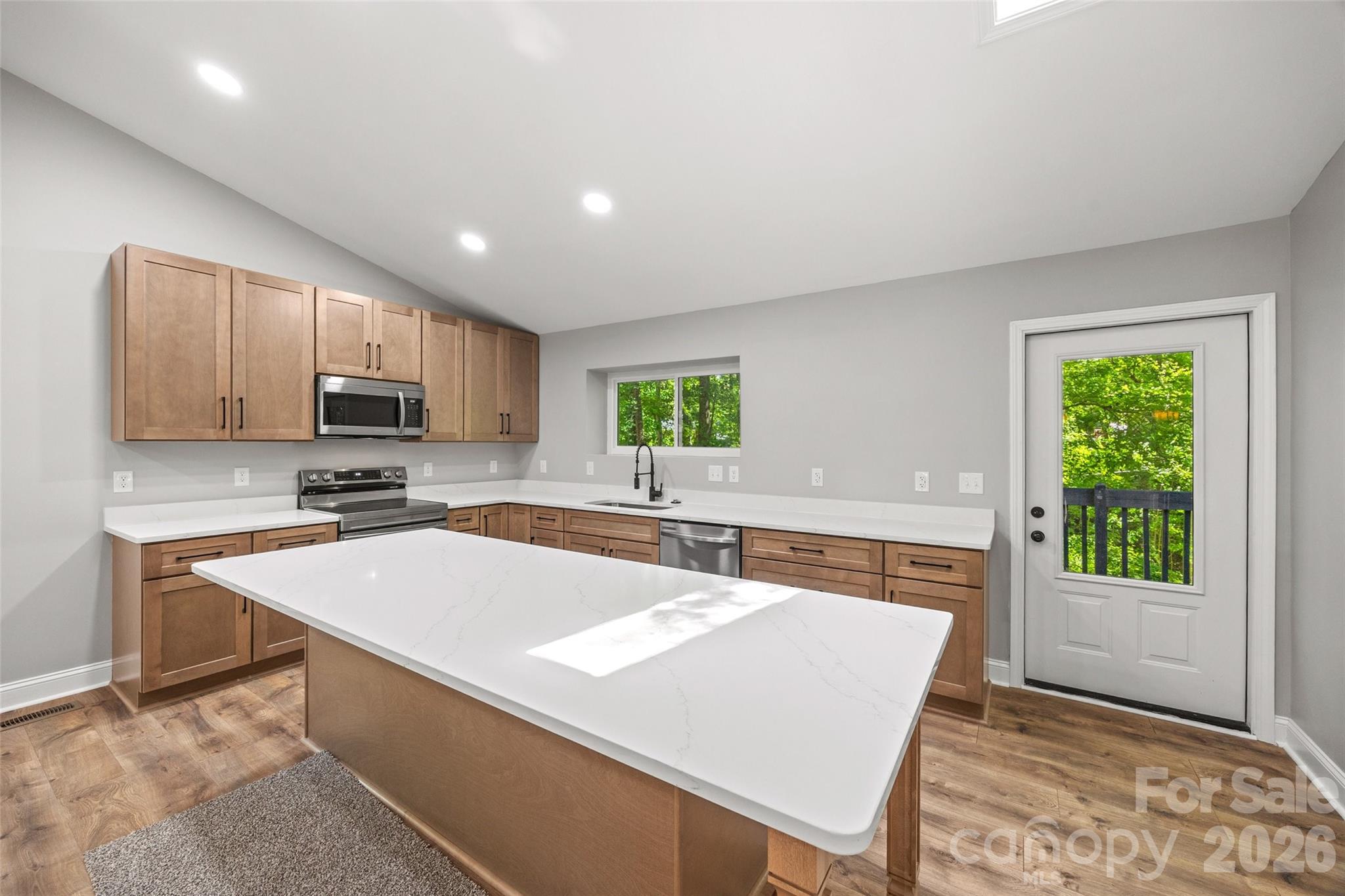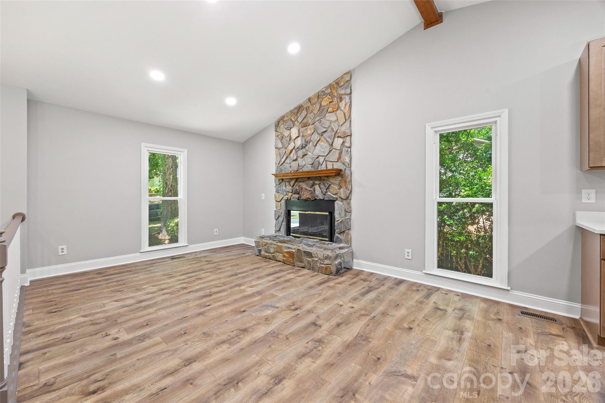 There is so much to love about this beautiful home in Fort Mill with NO HOAl!! With a unique split level design and vaulted ceilings, this home features an open, bright floorplan and a brand new kitchen with all new cabinets, quartz counters and appliances! The roof, gutters, windows and doors have also all been replaced in the past year, and the flooring and bathrooms are also recently renovated. The main level features new recessed lighting, beautiful LVP flooring, a stunning stone wood-burning fireplace, fresh neutral paint, a primary suite with a beautiful tile shower, two additional bedrooms and a hall bath. The lower level features a large bonus room with a kitchenette, a fourth bedroom, and a full bathroom with a laundry area. The 0.40 acre lot has privacy fencing and backs to woods for tons of privacy. The quiet community is just minutes from everything in Fort Mill, including the Anne Springs Close Greenway, shopping and restaurants, and is an easy commute to Charlotte. Zoned for highly rated Fort Mill Schools and low SC taxes! Don't let this beautiful home get away!