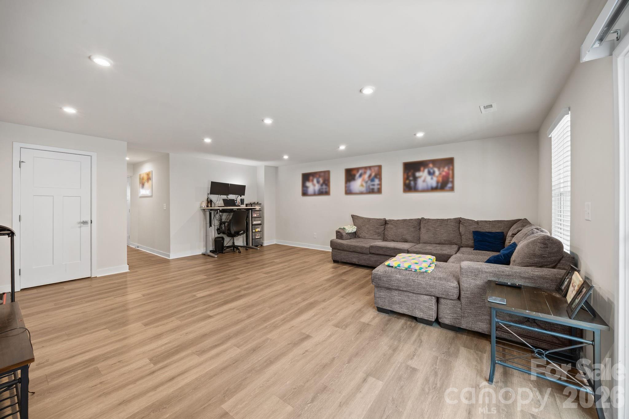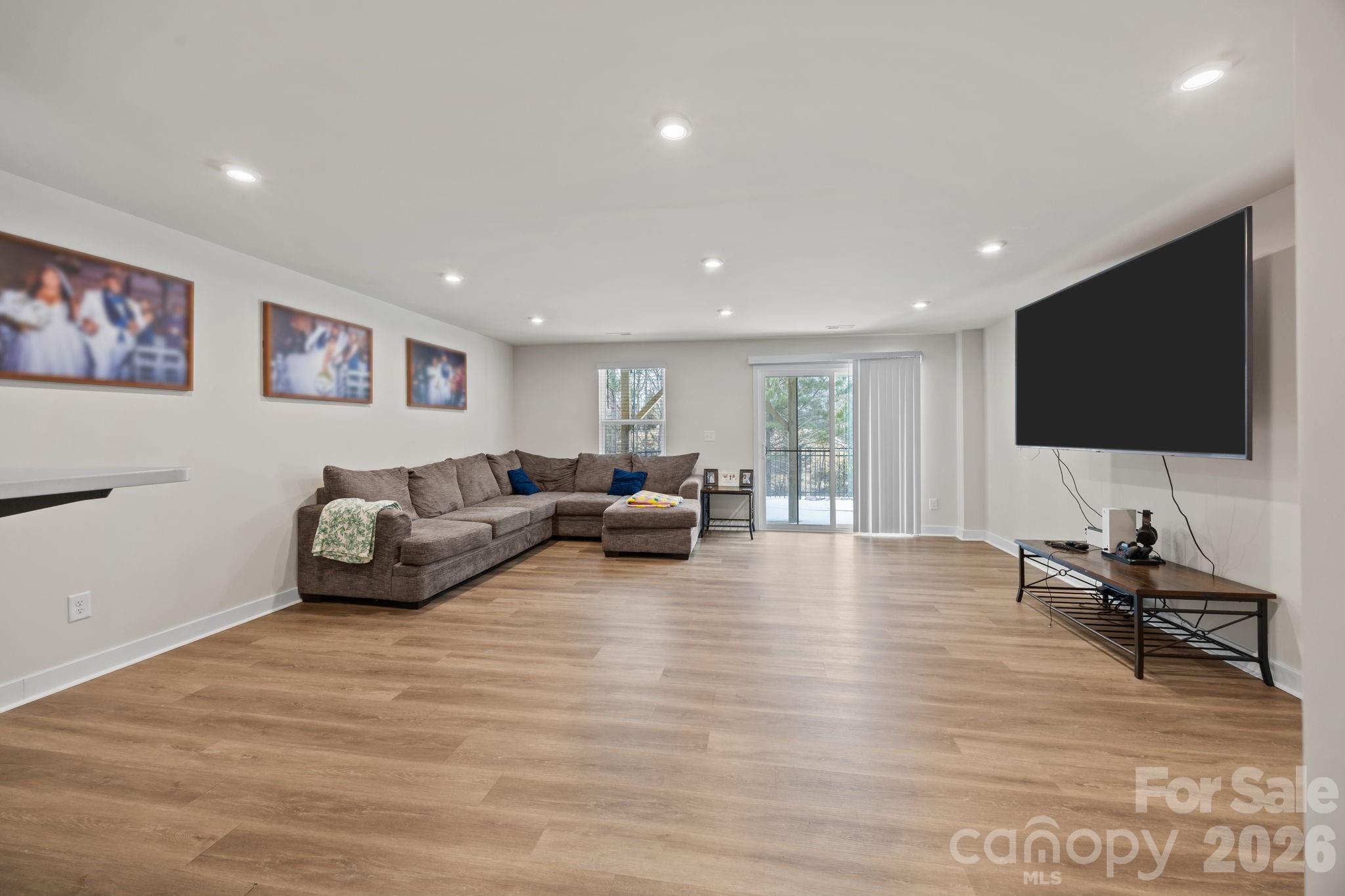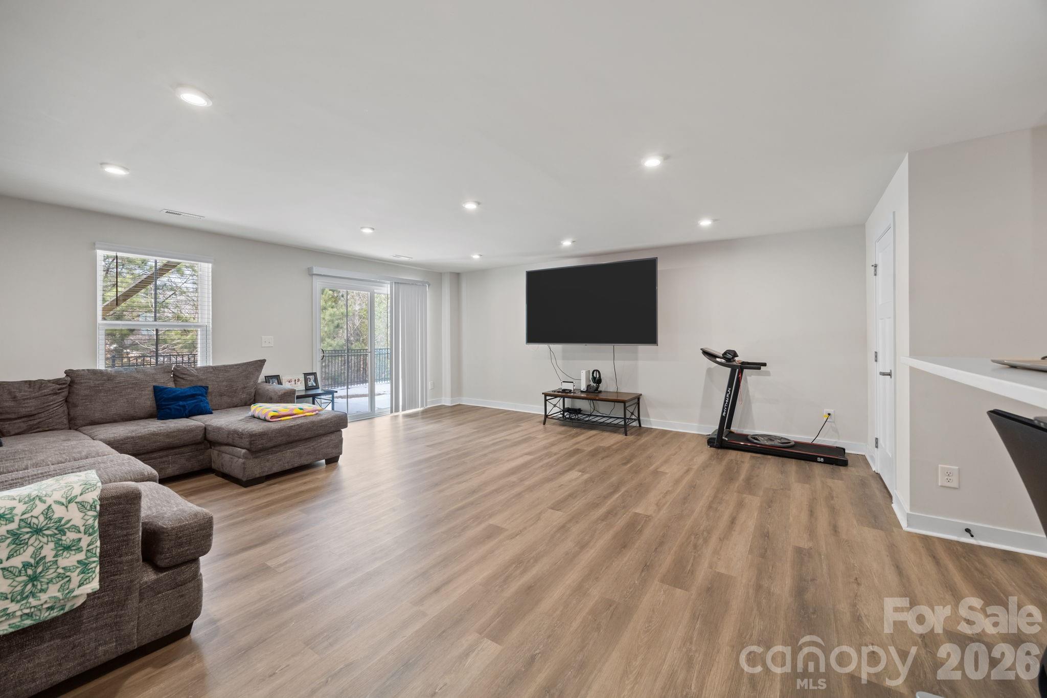 Welcome to this stunning 3-story townhome in The Towns at Mallard Mills, built in 2023 and designed for modern living! This beautifully maintained home offers 3 bedrooms plus a versatile lower-level bonus room that can easily serve as a 4th bedroom, home office, or media space. The open-concept main level is perfect for both everyday living and entertaining, featuring a spacious kitchen with a large island, granite countertops, and plenty of cabinet space. Durable LVP flooring flows throughout the main level, adding both style and function. Step right off the kitchen onto the private deck overlooking a wooded view—the perfect spot for morning coffee or winding down in the evening. Upstairs, the primary suite offers a relaxing retreat with a soaking tub, walk-in shower, double vanity, and generous closet space. Two additional bedrooms share a well-appointed full bath, and the convenient upper-level laundry closet makes daily living easy. The lower level features a large flex space ideal for a 4th bedroom, bonus room, gym, or office, with direct access to a patio for additional outdoor living. A 1-car garage adds extra convenience and storage. Located just minutes from Hwy 485, shopping, and restaurants, this move-in-ready townhome combines comfort, style, and an unbeatable location. Don’t miss your opportunity to own in this growing community!