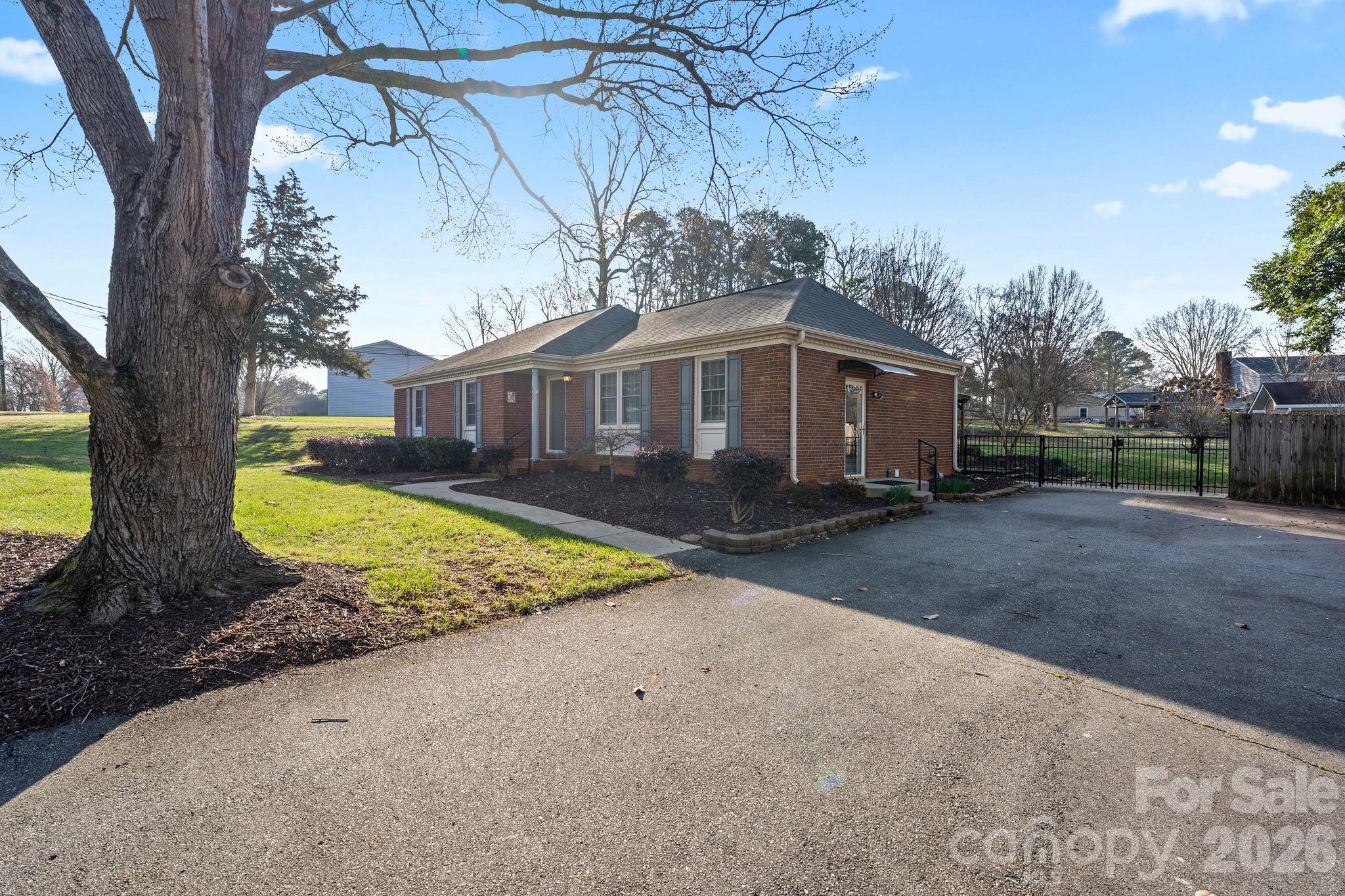 Welcome to 2309 Amity Ave in Gastonia, a beautifully updated full brick ranch offering over 1,700 square feet of comfortable living space on a spacious and private 0.44-acre lot. Nestled in a quiet, established neighborhood, this home features an expanded driveway, mature trees, and extensive landscaping that create inviting curb appeal and added privacy. Inside, you’ll find a thoughtfully renovated open layout highlighted by luxury vinyl plank flooring throughout the main living areas, kitchen, bonus room, and mudroom, along with fresh paint throughout most of the home. Textured designer walls in the kitchen, living, and dining areas add warmth and character, while updated door hardware enhances the modern finish. The fully renovated kitchen serves as the centerpiece of the home, showcasing custom cabinetry, granite countertops, stainless steel appliances, abundant storage, and a movable pull-out island ideal for entertaining or flexible meal prep. A built-in Keurig water line adds everyday convenience. Recessed lighting throughout the kitchen, living room, dining room, hallway, and bonus room provides bright, modern illumination, complemented by updated electrical outlets and light switches in key living spaces. The living room offers a welcoming environment for gatherings, while a spacious den or flex room filled with natural light provides versatility for a home office, additional living area, or creative space. The home includes three bedrooms and two full bathrooms, including a primary bath featuring a newly installed toilet. A separate laundry and mudroom with fresh paint and LVP flooring adds functionality and additional storage. Outdoor living shines with a large patio oasis featuring a deck and pergola overlooking a private fenced backyard, ideal for entertaining, pets, or relaxing evenings. A new side-entry awning adds convenience, and an oversized detached workshop with heating capability offers excellent space for hobbies, projects, or storage. Additional exterior storage further enhances usability. Combining modern updates, flexible living spaces, and a generous lot in a convenient Gastonia location, this move-in ready home delivers exceptional value and versatility. Schedule your showing today and experience all this property has to offer.