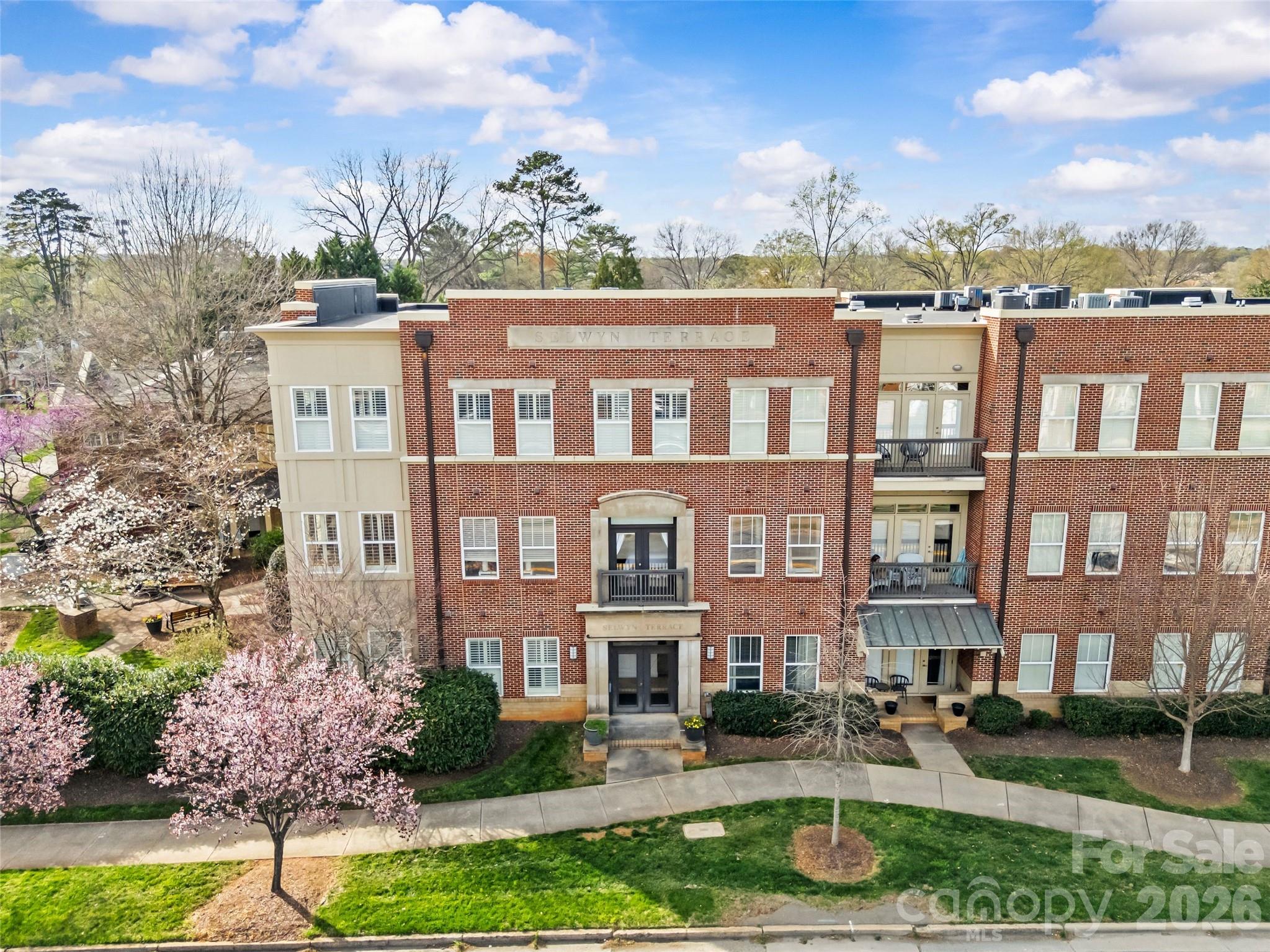Come experience this beautiful, top floor, corner, 2BR unit at Selwyn Terrace, in the heart of Myers Park! These units do not come up often and this one has it all from a corner location with tons of natural light coming through the additional windows, 10' ceilings, open layout with a kitchen and living space that open nicely to your private balcony. Granite counters, SS appliances, and cabinets to the ceiling providing you with plenty of storage. Enjoy all that the area has to offer from shopping and restaurants just steps from your door to Park Rd Shopping Center and the greenway! This unit has been well cared for: HVAC '21, Water Heater '24, Light hardwood-look LVP flooring through main living areas and BRs and tile floors in the baths (~'24), California closet systems in all closets and 3.5'' plantation shutters on all windows and doors.