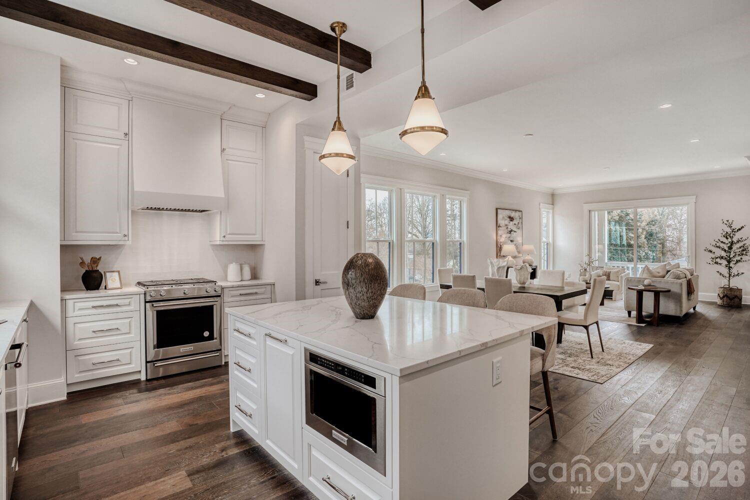 Remarkable End Unit Townhome in Selwyn Walk! This never-lived-in home is immaculate. The front door walks out to quaint Pinehurst Place steps away from the Greenway, Montford Drive and Park Road Shopping Center. Three generously sized bedrooms with dedicated office all with en-suite bathrooms. Vast kitchen featuring gorgeous beams and exposed shelving opens up to the dining and living areas with covered front porch overlooking Pinehurst Pl. The rooftop terrace is oversized providing multiple areas for entertaining. Rare side-by-side two-car garage with ample storage. A fantastic opportunity to live in the heart of Myers Park!