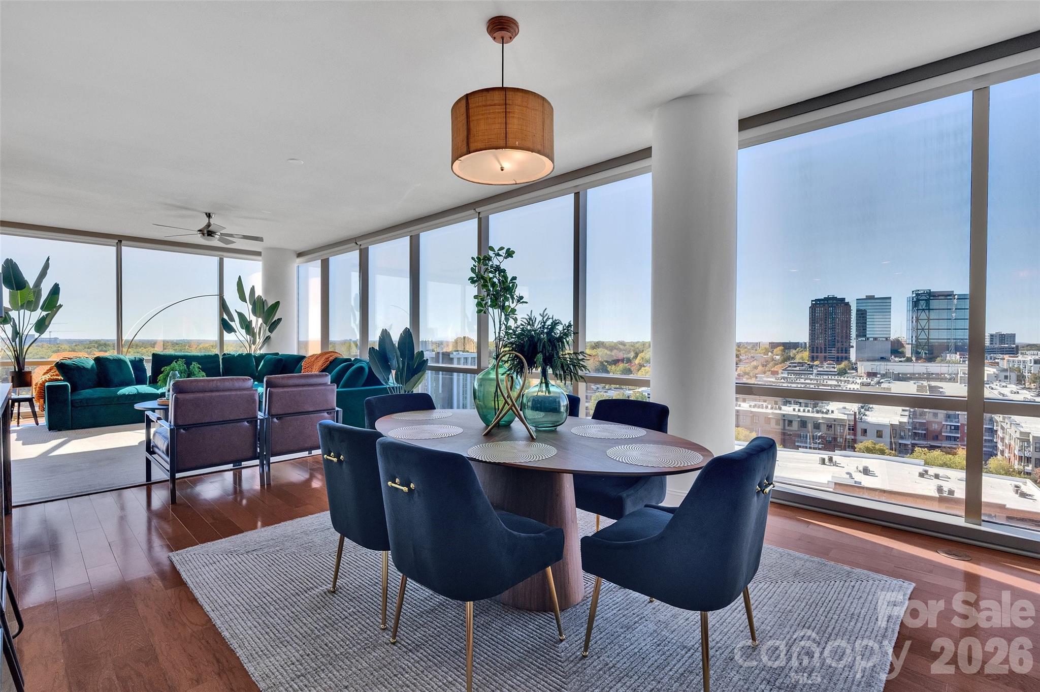 "Welcome home to this beautifully appointed 2-bedroom, 2-bath residence perched on the 12th floor of The Arlington in the heart of South End. Floor-to-ceiling windows fill the space with natural light and capture stunning skyline views, creating a warm and inviting atmosphere. The open-concept layout is both comfortable and refined, ideal for everyday living or entertaining. The kitchen features stainless steel appliances, quartz countertops, a gas range, and updated cabinetry, complemented by recent upgrades including recessed lighting, tiled backsplash, remote-controlled blinds, fresh paint, and modern fixtures. Enjoy full-service living with concierge amenities, a rooftop pool, resident lounge, and fitness center. Located just moments from Uptown, Dilworth, and Myers Park, with direct access to the Rail Trail, light rail, dining, shopping, and nightlife. Furniture conveys with an accepted offer, and a 1-year home warranty is included. Effortless city living in one of Charlotte’s most desirable locations."