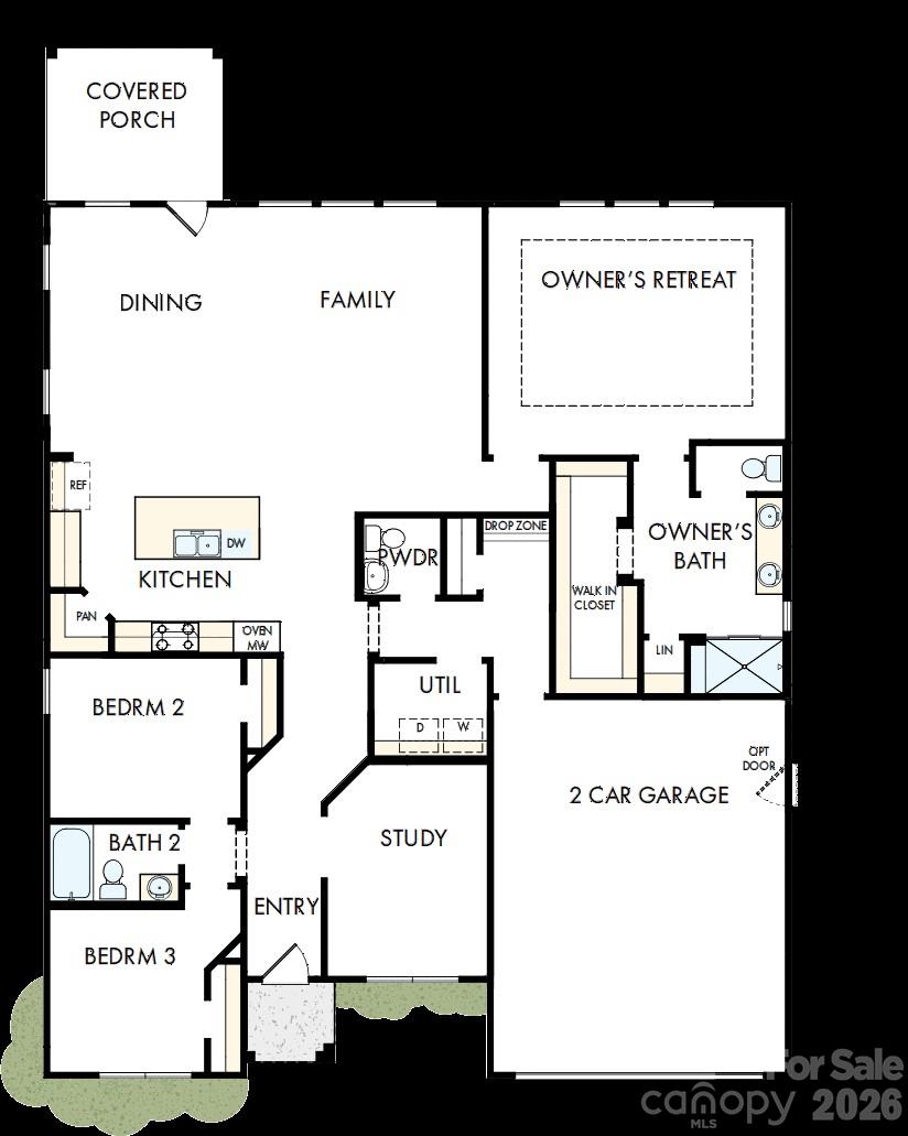 Located in the 55+ community of Encore at Harmony in Harrisburg, NC and built by David Weekley Homes, this beautifully designed one level home offers comfortable, easy living—with lawn care provided for low maintenance living. A covered front patio welcomes you inside to a bright foyer with a private study behind elegant French doors. The open layout leads to a spacious living area filled with natural light from large picture windows. The heart of the home is a modern kitchen featuring top of the line Frigidaire appliances, including a wall oven and gas cooktop, along with a large island perfect for gathering and entertaining. The great room flows effortlessly to a covered back patio, creating a seamless indoor/outdoor space for relaxing or hosting friends. The home includes three bedrooms and two and a half baths, with a peaceful owner’s suite highlighted by a tray ceiling and a spa-like bath featuring a zero-entry shower. Two additional bedrooms provide comfortable space for guests, making this home both stylish and welcoming.