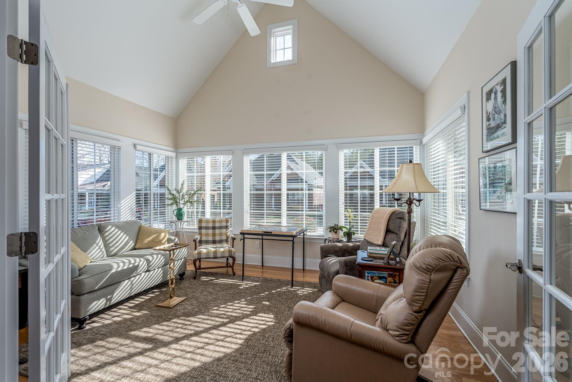 Located in Augusta Place II at Laurel Creek, this one-owner home is ready for you! The family room features a vaulted ceiling, gas log fireplace, and hardwood floors that flow throughout the main living area. The kitchen, with white cabinets, stainless appliances, and quartz countertops overlooks the dining area and family room. A highlight of this beauty is the spacious sunroom that is filled with natural light and provides the perfect place for your morning coffee or evening relaxation. The primary bedroom suite features a vaulted ceiling, carpet, two closets, and full bath with tile shower and double vanity. A second bedroom on the main level is close to the second full bath that features a tiled tub/shower combo. An additional flex space on the main level offers many possibilities – office, den, or overflow space for guests. A nicely sized laundry room and storage space complete the main level. Upstairs is a private retreat with bedroom/bonus, and a full bath so your overnight guests will have a wonderful place to retreat! Enjoy relaxing on your front porch and enjoy the benefits of living in one of Rock Hill’s premier locations. In addition to all of this, a double garage is certainly a bonus. This 55+ community features a clubhouse with exercise room, pickleball courts, as well as the tennis courts, walking trails, and pool of Laurel Creek. All rugs convey with this home. Window treatments in all rooms with the exception of the primary bedroom convey as well. Come see all 375 Quinby Way offers!
