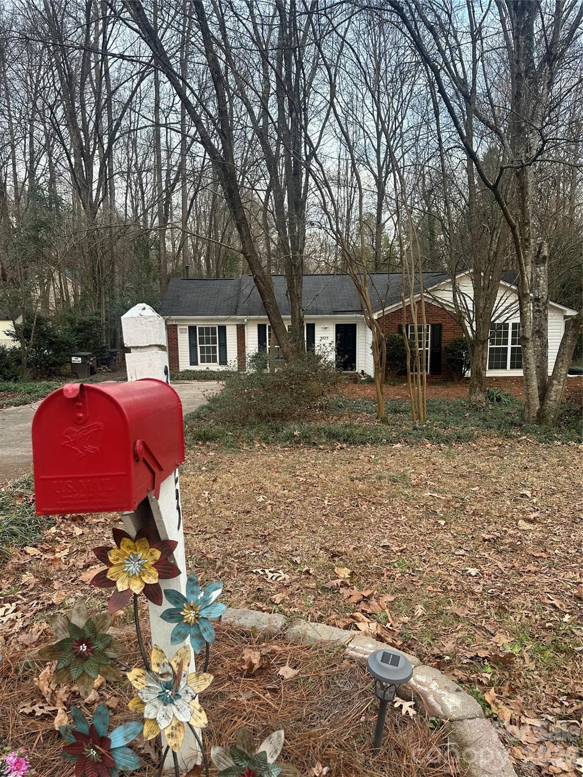Welcome to this charming 4-bedroom ranch home (or 3 bedrooms plus a large bonus room) located in an established neighborhood with NO HOA. Upon entering the home, you will notice new vinyl plank flooring and new interior paint throughout. The living room, dining room, and kitchen all showcase vaulted ceilings, creating an open and airy feel. There is a partial wall that does not extend to the ceiling between the living room, dining room, and kitchen, allowing for an open flow between rooms. The laundry room is conveniently located in the kitchen, includes a door, shelving above, and the washer and dryer convey. Additional storage is available with a large hallway closet. The generously sized primary bedroom offers a walk-in closet, tray ceiling, ceiling fan, and private bath with garden tub. Secondary bedrooms are also well sized. There is a full bathroom located conveniently at the end of the hallway between the bedrooms. The spacious 4th bedroom/bonus room measures 10’7” x 16’ and features a ceiling fan and large closet, offering flexible use as a bedroom, office, playroom, recreation space, and more! Attic access is available via pull-down stairs in the 4th bedroom/bonus room or by ladder access in the hallway. The fully fenced backyard provides a private, outdoor living space that you can enjoy on the patio or gather around the fire pit—perfect for relaxing evenings, roasting hot dogs or marshmallows for making s’mores. Two versatile backyard outbuildings add exceptional value and storage: one wired shed/outbuilding offering approximately 155 sqft with attic storage (15'2" x 10'2"), and a second outbuilding with 97.6 sqft (12'2" x 8') plus an additional 33.6 sqft of bonus storage—ideal for tools, hobbies, or future projects. Relax and enjoy the backyard nature-filled retreat rich with established landscaping, including a pear tree on the left side of the home between the driveway and fence, a second pear tree on the right side near the large outbuilding, and two blueberry bushes alongside the outbuilding. Hosta plants line the area outside the primary bedroom and kitchen windows, with additional hosta and elephant ear plants beneath the windows on the right side of the home. While currently dormant, these plantings are especially beautiful in the spring. Additional landscaping includes many different ornamental plantings throughout the yard. The front yard is enhanced by multiple azalea bushes that burst into vibrant blooms each spring, showcasing red, white, and pink flowers for a colorful seasonal display. In addition, the Google Nest security cameras will convey with the sale of the home. Conveniently located just minutes from Hwy 74, US 74 Bypass/Monroe Expressway, I-485, restaurants, shopping, a movie theater, and more—this home offers comfort, charm, and accessibility. This one will NOT last long!