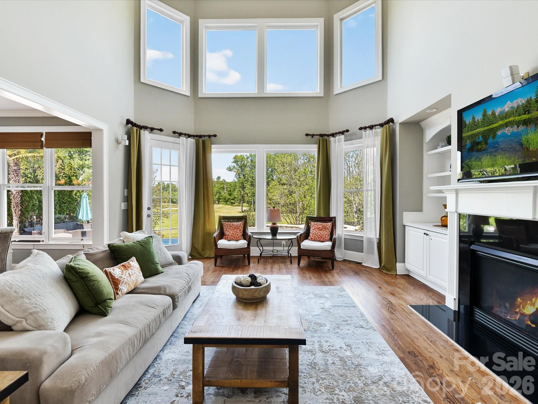Sophisticated Living at 404 Three Greens Drive Skybrook | Huntersville’s Premier Golf Course Community. Experience luxury in this beautiful John Wieland home where architectural elegance meets a resort-style backyard; this property offers unparalleled privacy with a stunning infinity pool and hot tub that overlook the 15th fairway. The backyard is a private sanctuary designed for the ultimate entertainer. Whether you are hosting a summer bbq or enjoying a quiet evening, the amenities are unmatched. A custom-designed infinity pool featuring a built-in hot tub. Outdoor Kitchen equipped with a built-in grill for seamless al fresco dining. Enjoy front-row seats to spectacular sunrises and sunsets with "forever views" across the golf course and total privacy. The home boasts a sophisticated layout highlighted by custom professional design and high-end finishes. A soaring two-story living room serves as the heart of the home, flooded with natural light. Features professionally designed custom cabinetry, granite countertops, stainless steel appliances and tile backsplash. A rare main-level bedroom with en suite offers flexibility for guests. All other bedrooms are located on the second level, each featuring its own dedicated bathroom for maximum privacy. The Primary Retreat is a true escape featuring a cozy fireplace and spa-like custom mirrors and finishes. The third floor is the "crown jewel" of the home. This massive bonus level includes: Full Wet Bar & Bath: Perfect for long movie nights or game days. Ample room for a pool table and more—this is the ultimate entertaining zone. It also offers the best views in the house, overlooking the pool and the rolling Skybrook fairways. This home has been meticulously maintained with significant recent upgrades: Brand New Roof was just installed for years of worry-free living and freshly encapsulated crawl space. Professionally designed tile work and designer mirrors throughout that set this home apart from the rest. Live the Skybrook lifestyle in a home that truly has it all. Schedule your private tour of 404 Three Greens Drive today!