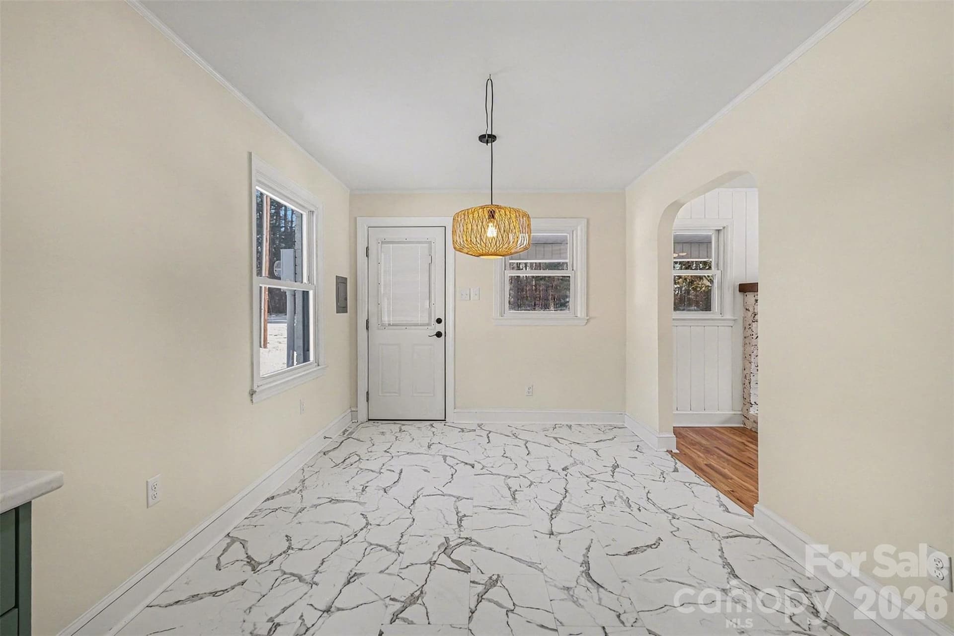 Charming, renovated, brick ranch just past South Iredell High School and convenient to downtown Troutman! Located out of the city limits so you will enjoy the benefit of lower taxes! Situated on over half an acre, this home blends modern updates and convenience with original character and charm. All new stainless kitchen appliances plus a new washer and dryer included. The kitchen and bath feature all new cabinetry with stylish gold hardware, quartz countertops, and new lighting. Original hardwoods have been beautifully refinished and run through most of the home, while original rounded archways add architectural character. The living area showcases a decorative tile hearth, German smear brick surround, slab mantle, and shiplap-inspired Luan trim accenting the fireplace area. An attached carport offers covered parking and additional storage, while a site-built outbuilding with electricity (including 220 power), provides flexible space for hobbies, projects and additional storage. Additional significant updates include replacement windows, new electrical panel with updated receptacles, all new lighting fixtures, and a new water heater. USDA eligible area. Schedule your showing today!
