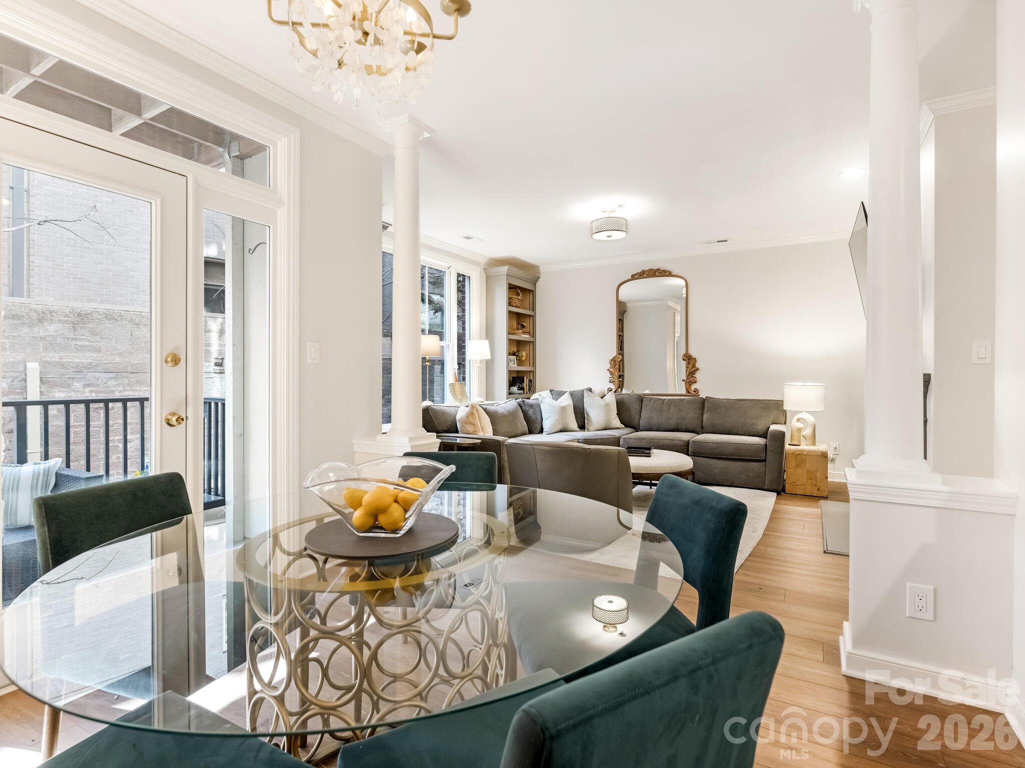 Beautiful two-story condo on tree-lined Queens Rd, right in the heart of Myers Park. This condo has it all… new flooring, new paint, an updated gas fireplace surround, new cabinets/bookcases, newly painted kitchen cabinets, new dishwasher and stainless steel appliances. The living room and dining room are perfect for entertaining and lead to a nice covered porch. Walk up the stairs and notice the new designer runner. Second level boosts an updated primary bedroom with 2 closets and access to another private balcony. The ensuite bath is complete with quartz countertops, double sinks and a walk-in shower w/ marble flooring. There is a 2nd bedroom and 2nd full bath in the hallway as well as the laundry room. Great space for an office, guests, or gym. Secure building with gated and covered parking. One deeded parking space with this unit and additional parking is available. Great storage within the unit plus a dedicated storage closet in the main hallway, 2 doors down. Conveniently located to hospitals, Uptown, Midwood, great restaurants, shopping and the Greenway.