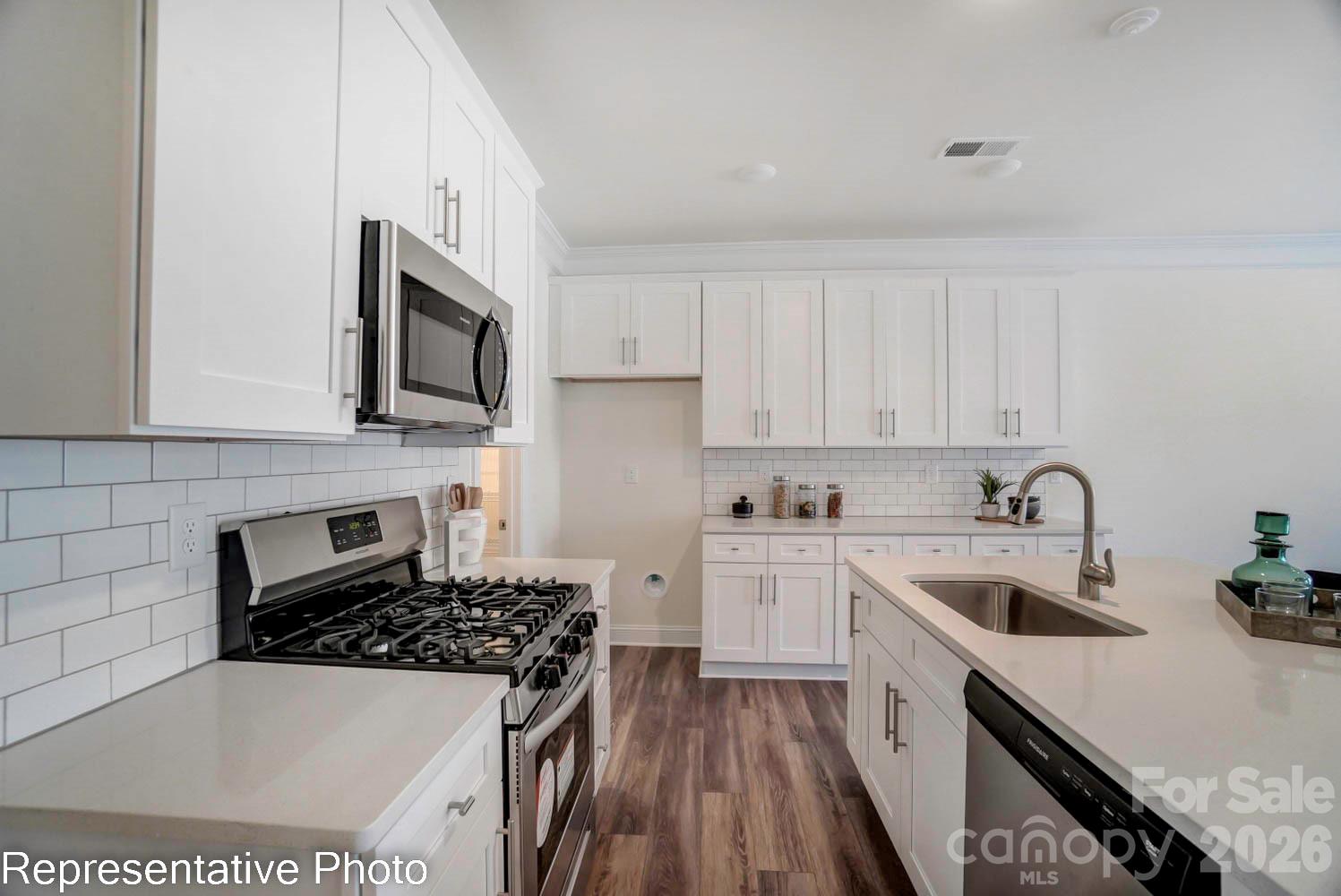 New townhomes in Harrisburg! This beautiful Bristol plan offers 3 bedrooms, 2.5 baths, a 1-car garage, and more than 1,700 square feet of living space. The beautiful entryway features wainscoting and a beadboard drop zone. The kitchen features Shaker-style, white cabinets, quartz countertops, a backsplash with white subway tile, a walk-in pantry, and stainless appliances. Enhanced Vinyl Plank (EVP) flooring runs throughout the main level to complete a modern look. The primary suite, located on the upper floor, includes a large walk-in closet and the primary bath features a tiled shower with bench seat & built-in niches, and a double-bowl vanity. The upper floor also features two additional bedrooms, a full bath, and the laundry space. Other extras include quartz counters in all baths and stairs with composite treads & metal balusters. Community amenities include outdoor pool & cabana, dog park, paved walking trail, and playground. Visit today!