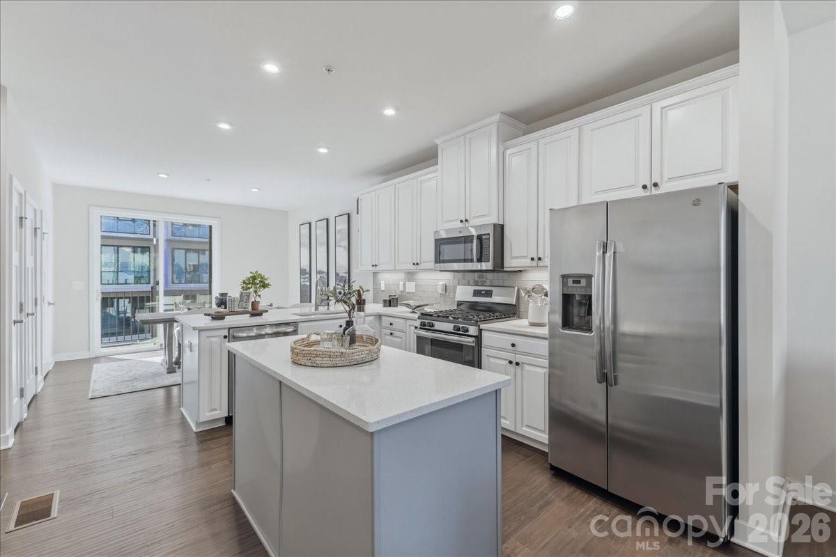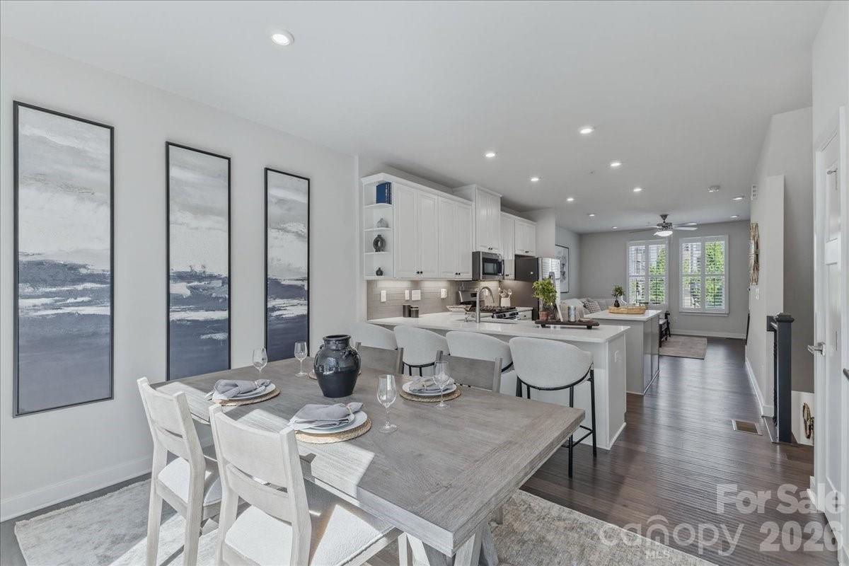 Step into modern luxury with this like-new four-story townhome in the heart of South End, just moments from shopping, dining, breweries, grocery stores, and the light rail. Designed for both comfort and entertaining, this home features a spacious rooftop terrace, attached two-car garage, and a chef’s kitchen with an oversized island, quartz countertops, and stainless steel appliances. The main level offers a bright, open-concept layout connecting the living, dining, and kitchen spaces—perfect for hosting before a night out. The third floor features a split-bedroom design, including a spacious primary suite with a walk-in closet, dual vanity, and oversized walk-in shower, along with a well-appointed secondary bedroom and full bath. The top floor adds even more versatility with a third bedroom, full bath, and flexible loft space that opens to the expansive rooftop terrace—ideal for relaxing or entertaining above the city.