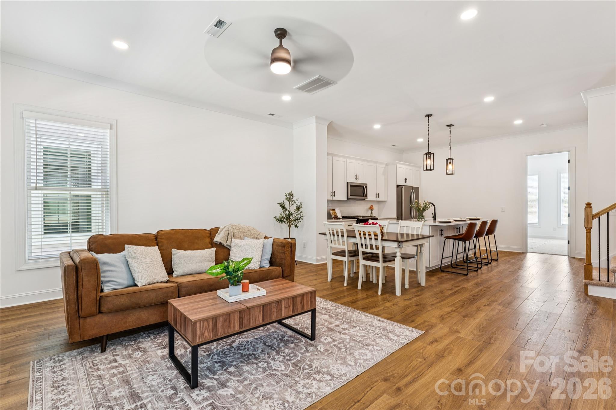 Some homes feel right the moment you see them. This is one of those. New construction in the heart of Downtown Kannapolis, with a primary suite on the main floor, a kitchen built for real cooking, and a front porch with rocking chairs already calling your name. The timing is just as good as the house. THE LOCATION: Stand on the front porch and look around, Downtown Kannapolis is not a destination from here, it is your backyard. Atrium Health Ballpark, the brewery, dining, the Loop Greenway, and multiple parks are all right outside your door. A brand-new dog park is going in next door. And if the drone shots look like a neighborhood mid-transformation, that is because it is. The construction you see happening around these homes is the next wave of Downtown Kannapolis coming to life and this address gets you in before it all arrives. THE LIFESTYLE: The HOA at just $133/month covers lawn care and landscaping, which means your weekends are yours. No shared walls, no monthly rent receipt, no lawnmower taking up half the garage. Just a real home in a real neighborhood, with a mortgage payment that might make your current rent look embarrassing. THE HOME: The main floor opens up into a generous living and dining area with warm LVP flooring, crown molding, and a kitchen that means business; quartz countertops, a large island with seating, subway tile backsplash, soft-close cabinetry, and stainless appliances. The primary suite is on the main floor with a walk-in closet, double vanity, and a tiled walk-in shower. Everything you need without ever touching the stairs. THE SECOND FLOOR: Two well-sized bedrooms, a full bath, laundry, and at the top of the stairs a cozy loft nook, just the right size for a reading chair, a morning coffee spot, or a small home office setup that actually feels like a retreat rather than a corner of the bedroom. THE GARAGE: A massive basement-level garage with interior stair access, room for multiple vehicles, a home gym, a workshop, or whatever you have been putting off building because you never had the space. THE DEAL: Ask about our preferred lender offering 0% down, 0 PMI, and $10,000 in forgivable credits for qualified buyers. Seller is offering $5,000 toward closing costs... or a golf cart, which in Kannapolis doubles as a legitimate mode of transportation straight to the ballpark.