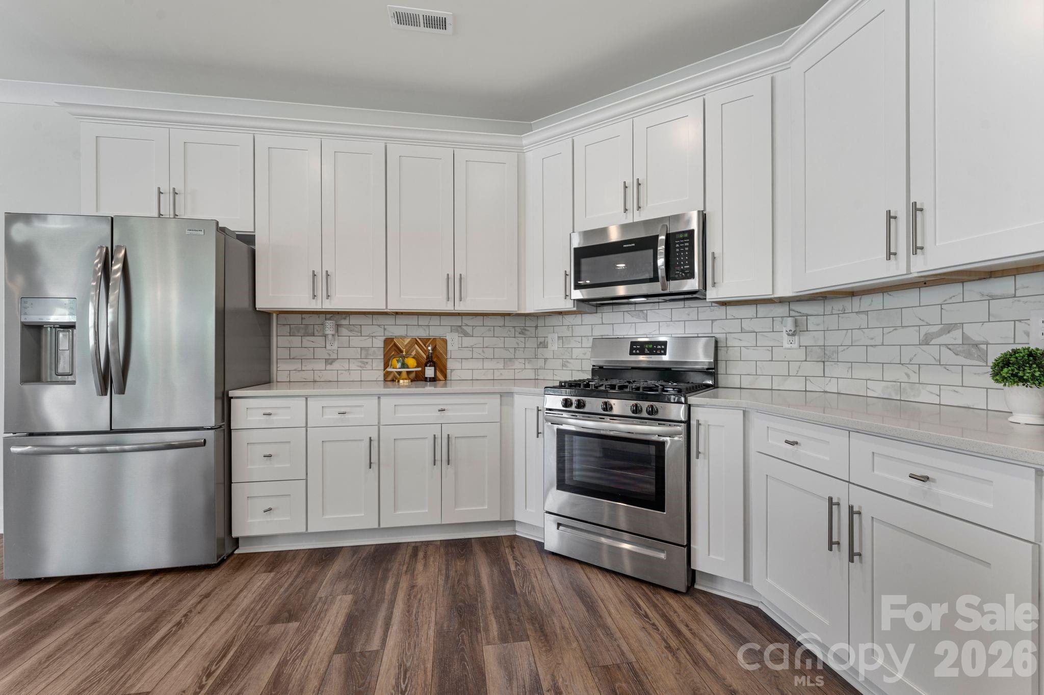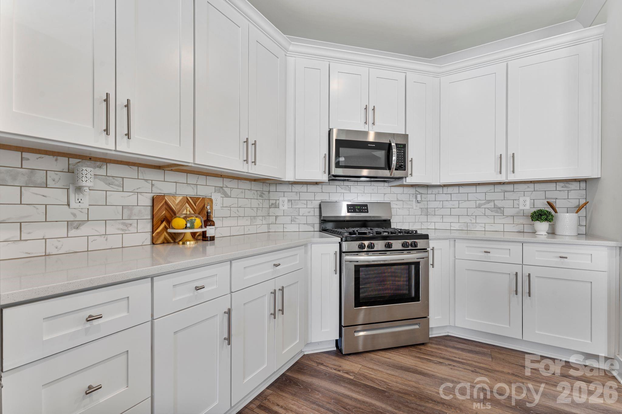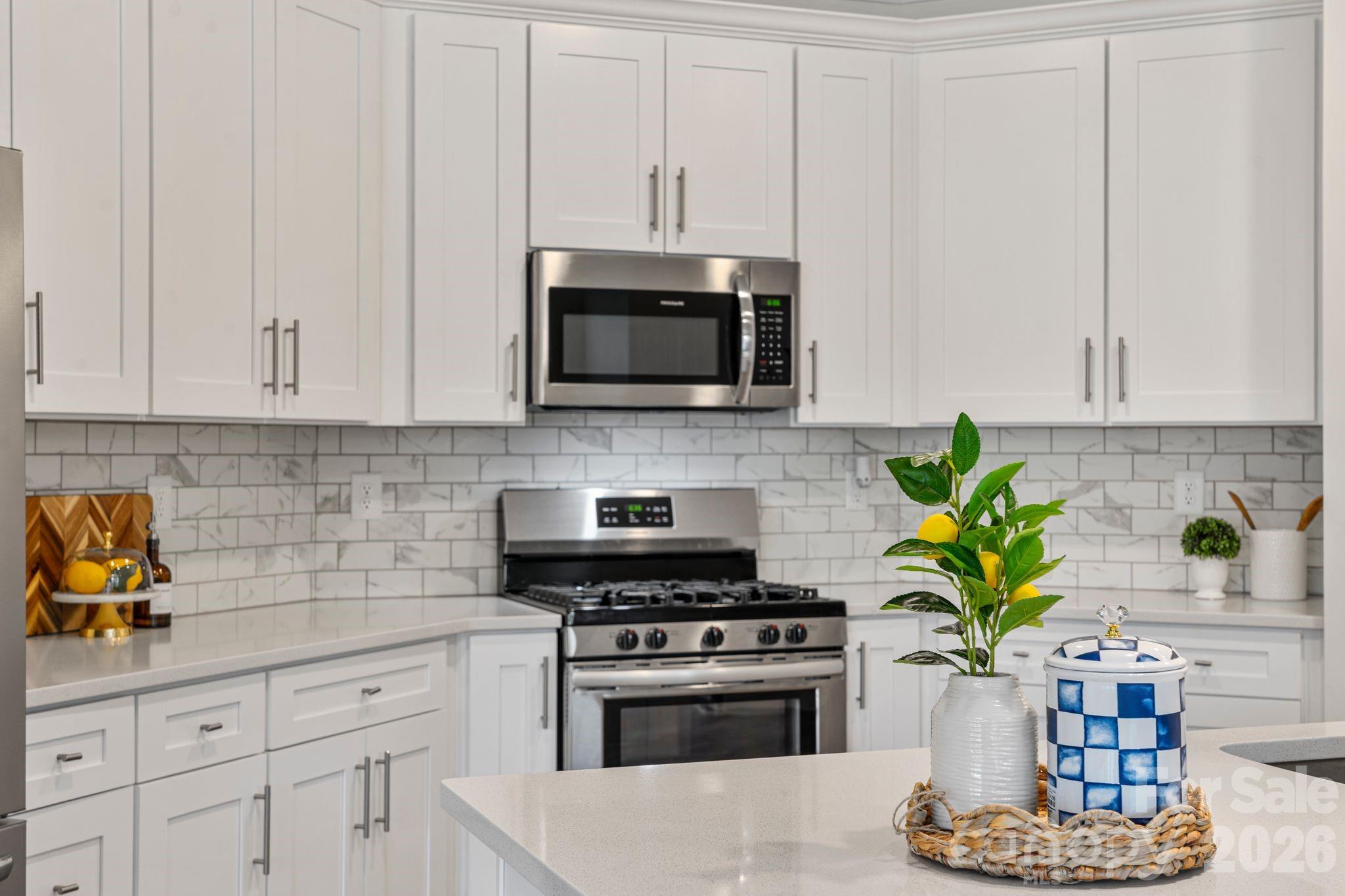 There's a version of home ownership where everything is already handled. The fence is in. The blinds are hung. The garage is finished. You open the door and the space receives you. 6211 Nandina Drive is that home. Ready for you to make it yours from day one. No wait. No add-ons. No upgrade costs. Just the foundation of a settled life, already laid out and waiting for you. The kitchen is where this home earns its reputation. Gas range, quartz countertops, marble subway tile backsplash, and an island with undermount sink and pendant lighting above. The family room opens directly to it so whoever's at the barstools stays in the conversation, whoever's cooking never misses a moment. The dining room carries its own personality, anchored by a chandelier and sliding glass doors that open to the covered patio and private fenced yard beyond. Inside and outside, the flow between them is seamless. Upstairs, the open loft creates breathing room. A second living area, a home office, a place for the household to spread out without losing each other. The primary suite is quiet and considered — frameless glass walk-in shower with built-in bench and mosaic accent tile, double vanity with quartz counters, natural light from a well-placed window. The secondary bath offers a full tub-shower combo with large-format tiled surround and niche shelving. Every finish chosen with intention. Off the garage entry sits a built-in mudroom that quietly holds the household together. Beadboard paneling, a bench, two cubbies beneath. The detail you don't know you need until you have it every single day. As an end unit, this home lives larger than its footprint. More windows. More light. More separation. And the location within the community is its own reward located directly across from the walking trail, pool, dog park, and green space. Not a drive. Not even much of a walk. Just across the street. Harrisburg schools. Minutes from shopping, dining, and UNC Charlotte. A neighborhood with a genuine sense of community and the quiet to match. 6211 Nandina Drive isn't waiting to become something. It already is.