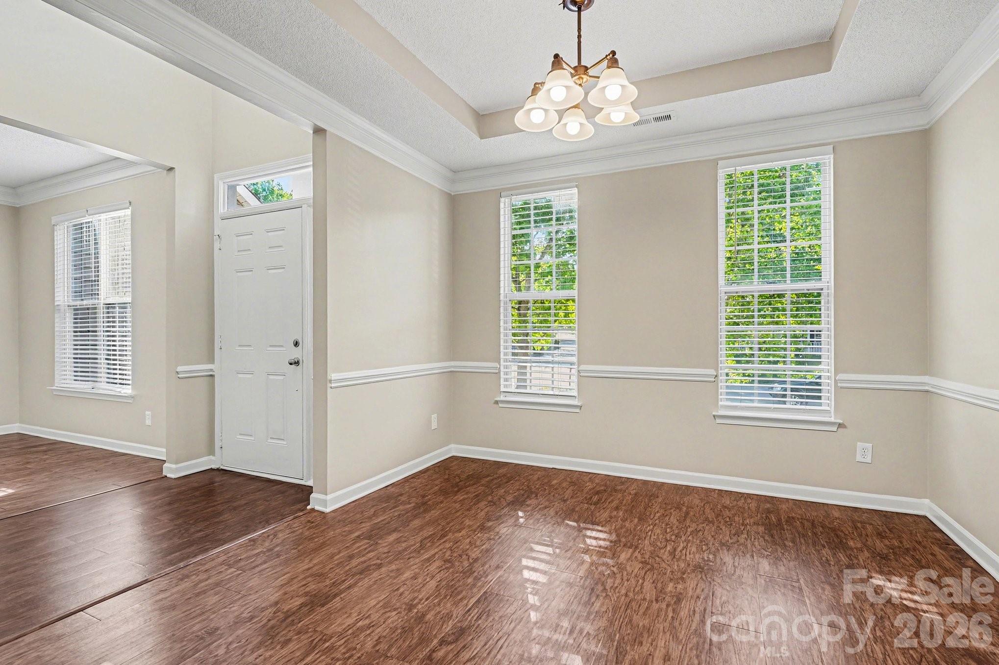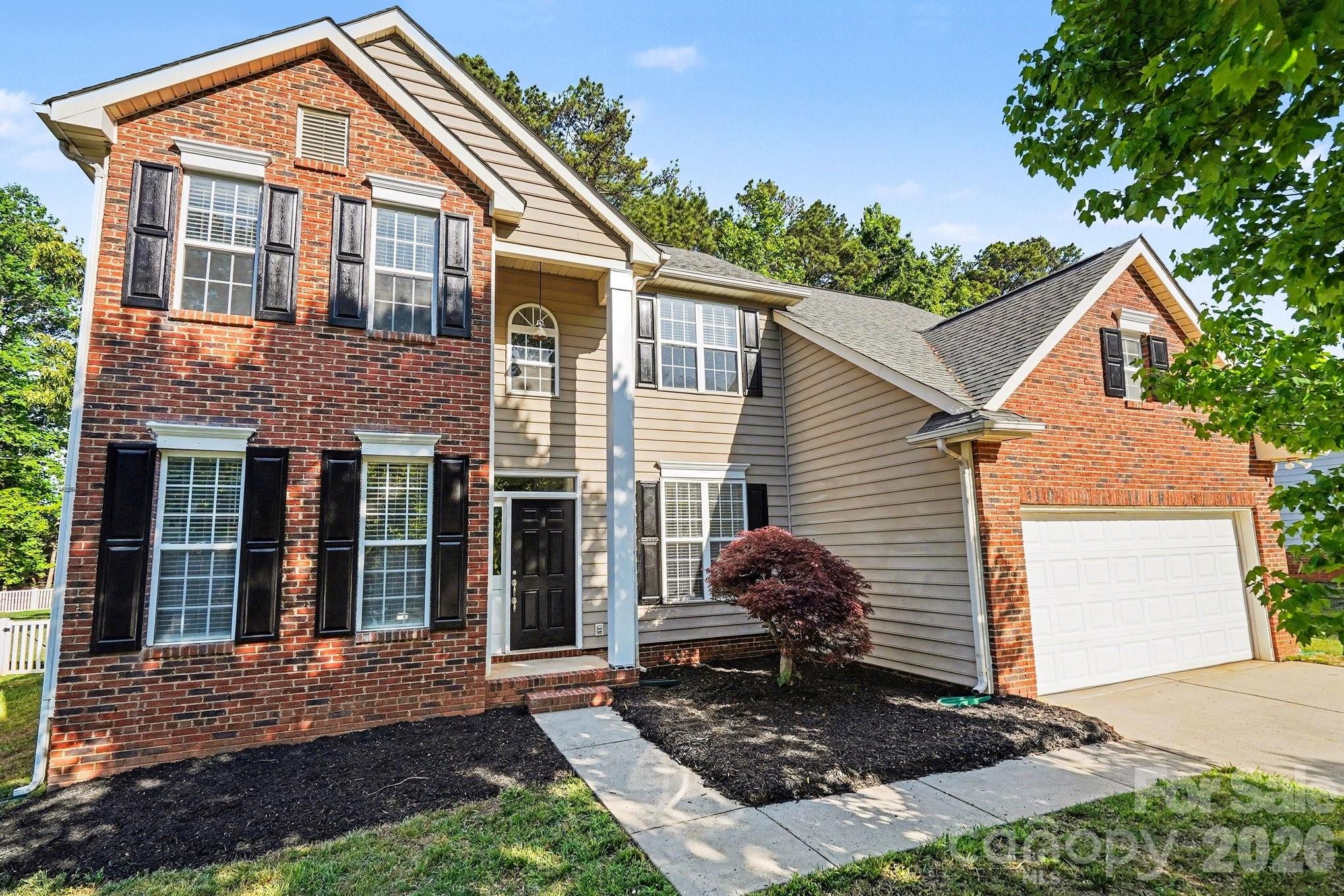 Four-bedroom, 2.5-bathroom move-in ready home in the established Bradfield Farms community of Charlotte. This residence welcomes you with a formal dining room and a versatile front sitting area that can easily serve as a dedicated home office. The heart of the home is the expansive living room, featuring dramatic vaulted ceilings and a central fireplace. The primary suite is conveniently located on the ground level, offering a private retreat with an attached ensuite bathroom featuring dual sinks, a garden tub, a separate standing shower, and a spacious walk-in closet. The home is ideally positioned just minutes from the Charles T. Myers Golf Course and a variety of local shopping and dining. With quick access to I-485 and I-85, you are perfectly placed for an easy commute. Schedule your showings today!
