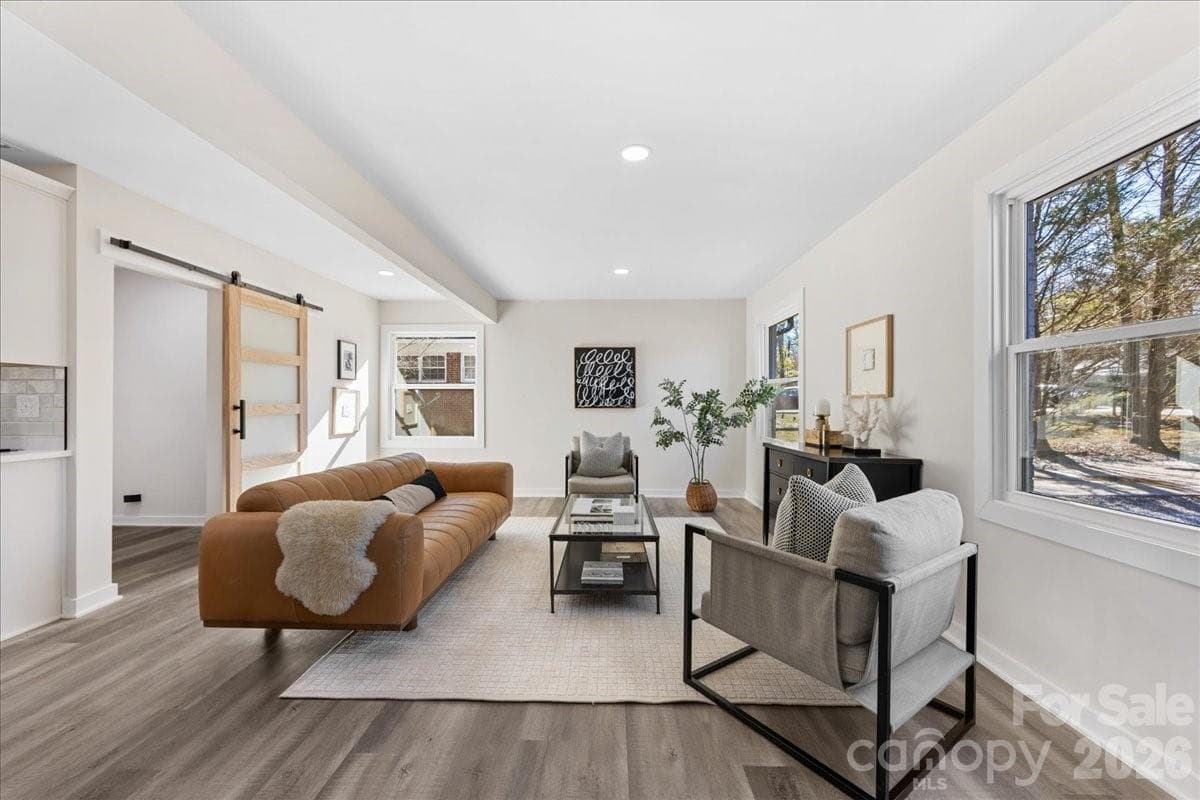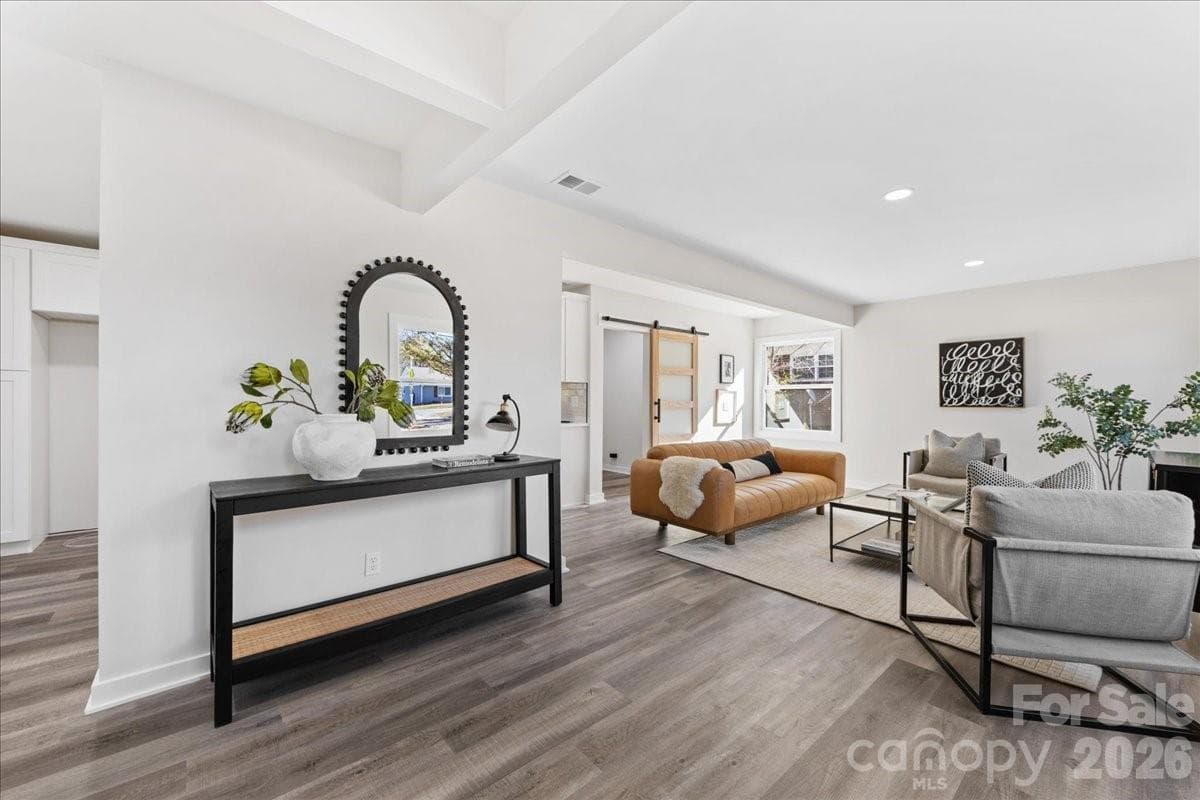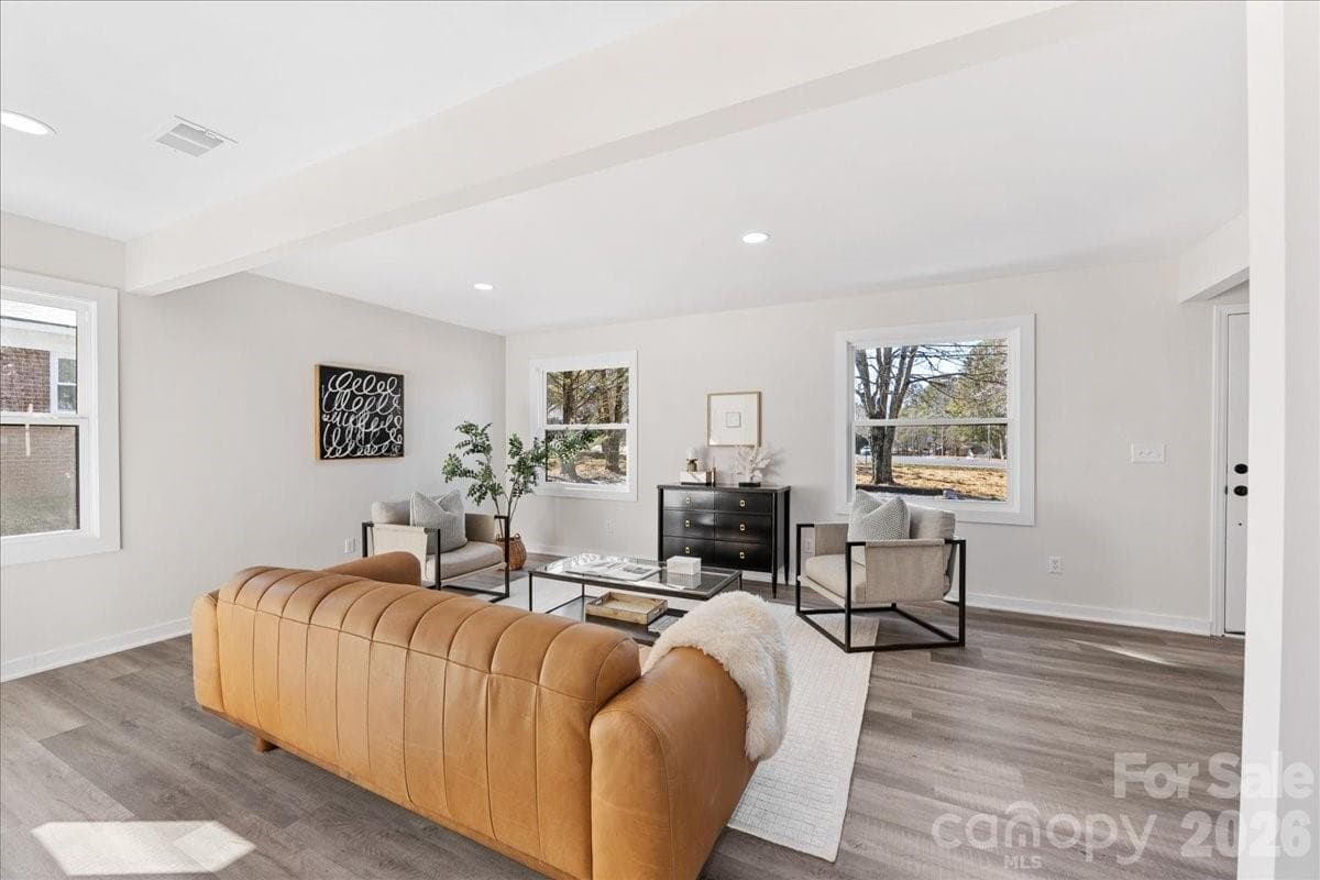 Stunning, move-in-ready home just a short walk from the dining and entertainment in the heart of downtown Matthews, with quick access to I-485. Ideally located near the Mecklenburg County Sportsplex at Matthews and directly across the street from the entrance to the Four Mile Creek Greenway. This impressive home offers a flowing open-concept layout and the rare advantage of two full bathrooms. Major upgrades include a new roof, custom windows, HVAC system, electrical panel, appliances, and a fully renovated interior. Permits were pulled throughout the renovation, providing peace of mind that the work was completed properly and professionally. Please see the attached documents for additional information regarding the E. John Street road widening project and short-term rental requirements. Visit www.matthewsnc.gov for additional details.