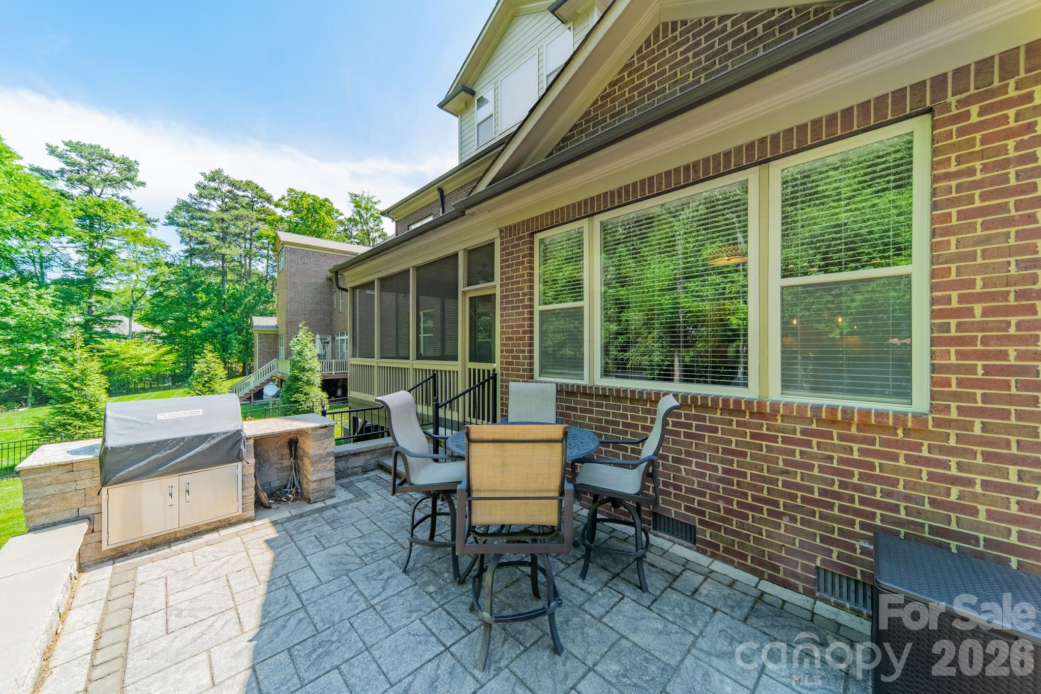 Built by renowned John Weiland Homes, this beautifully crafted home offers just under 5,000 square feet of thoughtfully designed living space with exceptional indoor and outdoor entertaining areas. The spacious kitchen is the heart of the home with extensive granite countertops, an oversized center island, walk in pantry, and a keeping room that opens seamlessly to the living room with a gas log fireplace and built-in bookshelves. The main level also includes a full guest bedroom and full bathroom, formal dining room, and a flexible study or music room. The side entry offers a convenient drop zone complete with hooks, bench seating, and cubbies for everyday organization. Upstairs, the second level offers four bedrooms and three full bathrooms, including the spacious primary suite with a large bathroom featuring a soaking tub, separate shower, and extra large his-and-hers closets. The third level, finished in 2020, adds even more versatility with a large bedroom, full bathroom, expansive entertainment room, and additional flex space perfect for an office, gym, or craft room. Outdoor living is just as impressive with a screened porch leading to a large paver patio featuring a built-in gas grill with granite counter space, a chimney fireplace, and above-ground hot tub with fully automated Covana cover. The backyard offers plenty of yard space along with mature woods for added privacy, creating the perfect setting for relaxing or entertaining year-round.