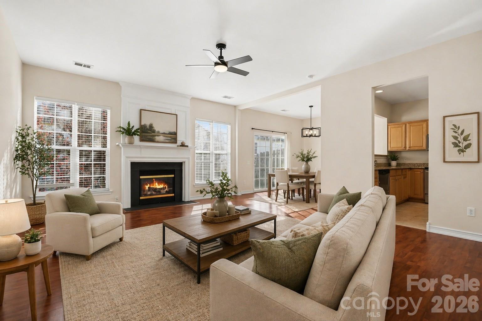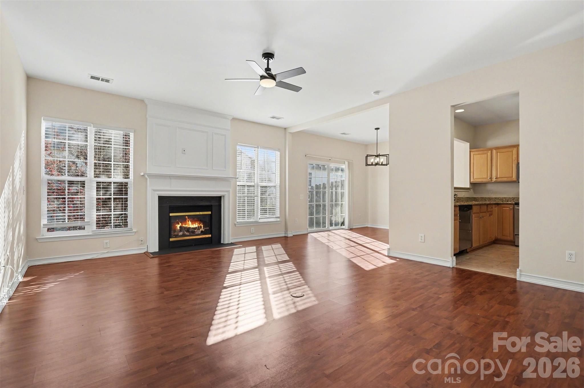 Well-maintained & move-in ready 3BR/2.5BA home tucked on a quiet street in desirable Reavencrest—featuring a rare 2-car garage in this community! Located in sought-after Ballantyne w/ award-winning schools, this home offers a functional layout & stylish updates throughout. The main level showcases laminate floors, a bright living room centered around a cozy fireplace w/ two large windows bringing in abundant natural light, & an inviting flow into the kitchen. The kitchen features granite countertops, SS appliances, ceramic tile flooring, & updated lighting for a fresh, modern feel. Upstairs, you’ll find spacious bedrooms including a primary suite w/ vaulted ceilings, along w/ conveniently located laundry. Bathrooms have been refreshed w/ updated light & faucet fixtures. Step outside to enjoy the oversized patio—perfect for relaxing or entertaining. A fantastic opportunity in a highly desirable location close the ballantyne bowl, Stone Crest at Piper Glen, Blakeney Town Center for endless entertainent, shopping and restuarants!