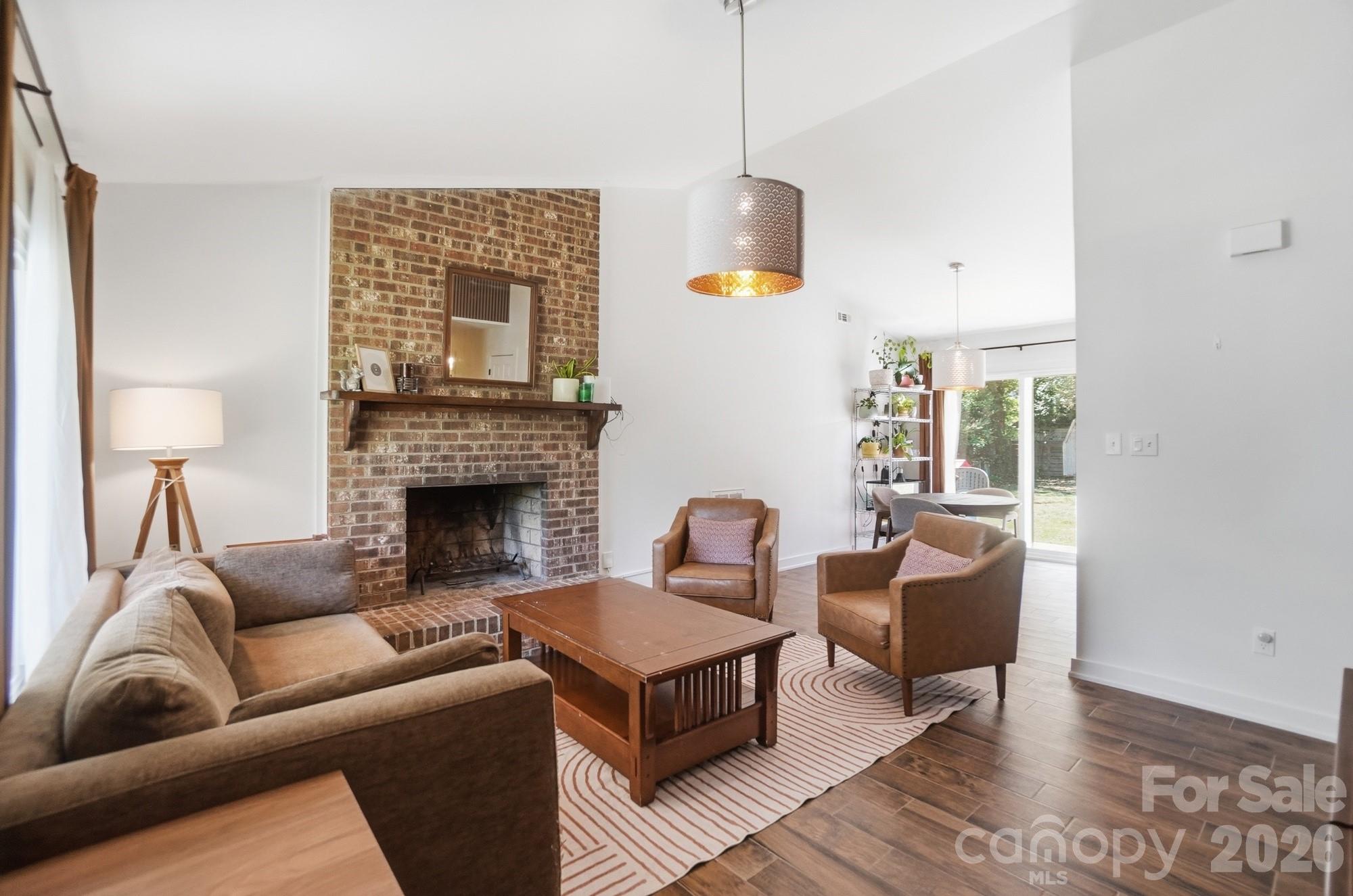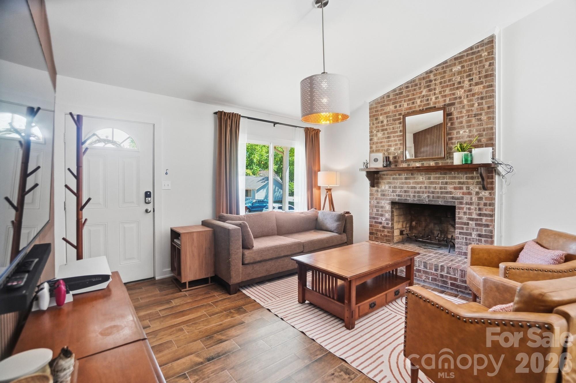Step into style, comfort, and convenience with this beautifully remodeled 3-bedroom, 1.5-bath ranch home perfectly situated on a spacious, level lot! From the moment you walk in, you’ll love the bright, open layout designed for modern living and effortless entertaining. The interior has been completely updated with stunning wood-look tile flooring throughout, offering both durability and warmth. The brand-new kitchen is a true showstopper, featuring sleek quartz countertops, stylish cabinetry, and stainless steel appliances—perfect for cooking and gathering. Both bathrooms have been thoughtfully renovated with fresh, contemporary finishes. Cozy up by the fireplace in the inviting living room or enjoy the flexibility of the open floor plan that flows seamlessly from space to space. Outside, the large, level yard provides endless opportunities for outdoor living, gardening, or future expansion. Conveniently located just minutes from I-485, shopping, and dining, this home offers easy access to everything while maintaining a peaceful residential feel. Whether you're a first-time buyer or an investor looking for a turnkey opportunity, this property checks all the boxes!